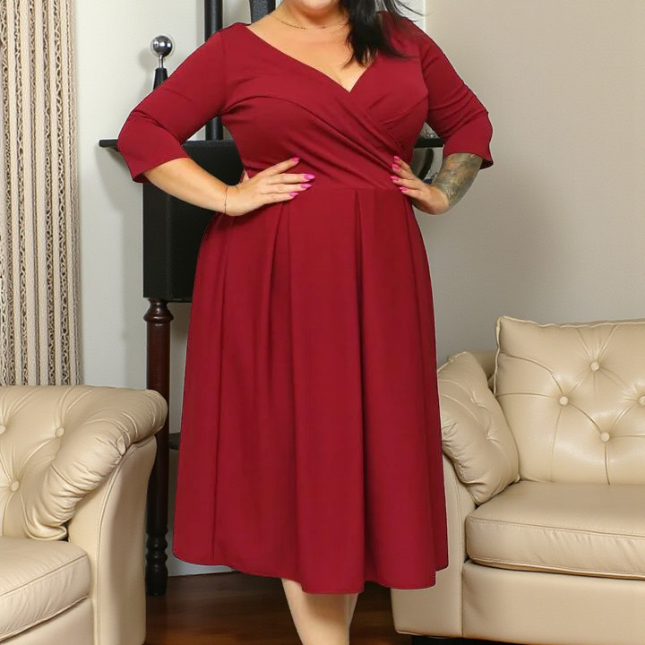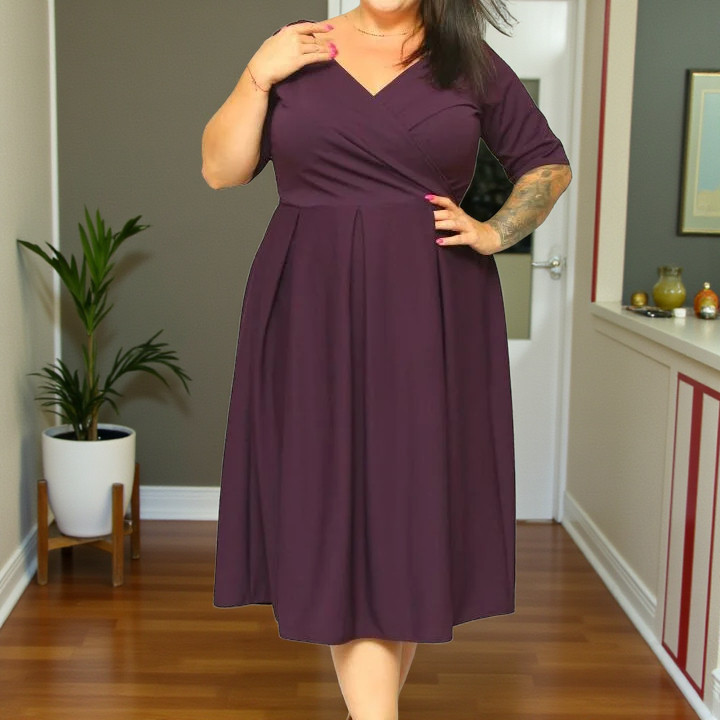 Sukienka Colette rozkloszowana kopertowy dekolt – Zanim kupisz, zobacz film, który pokazuje jak pięknie się układa. ŚLIWKA