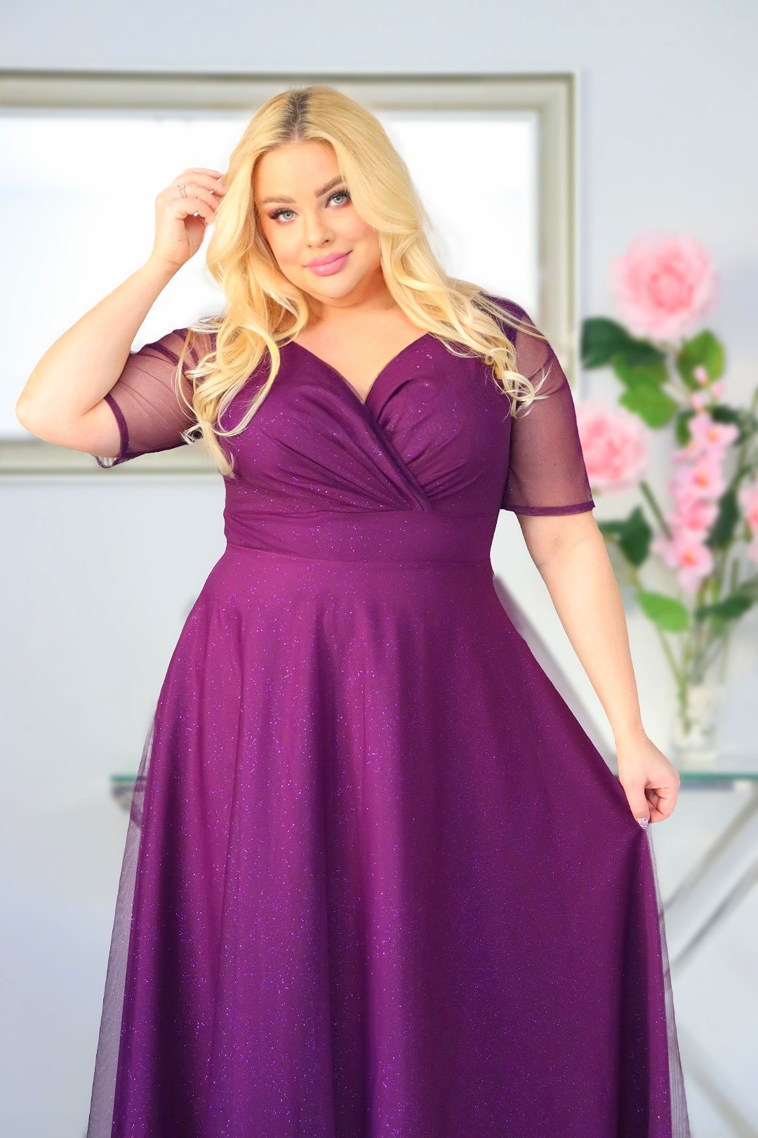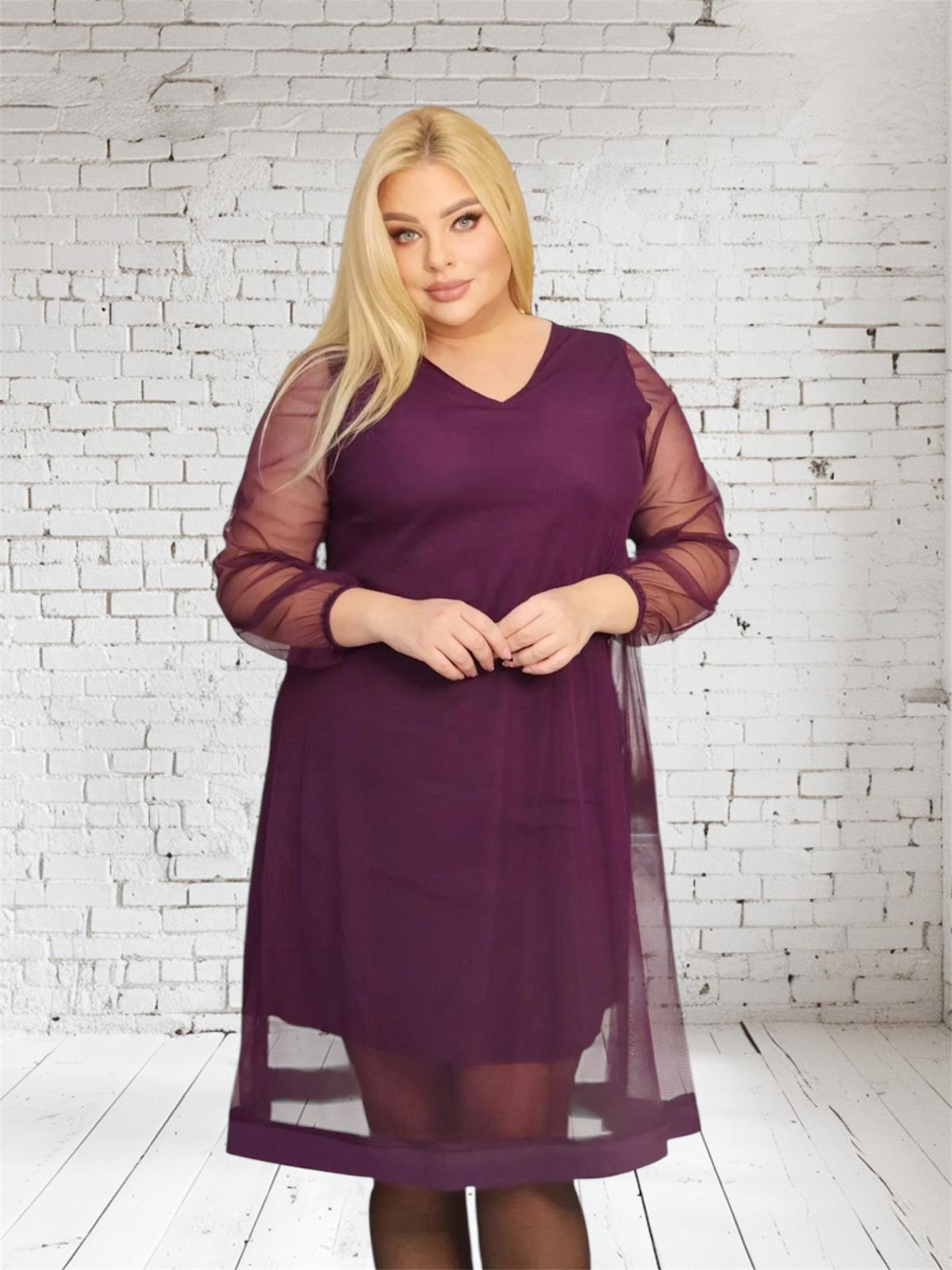 Elegancja spotyka komfort – sukienka Lidia z elastyczną talią i tiulowym wykończeniem liliowa
