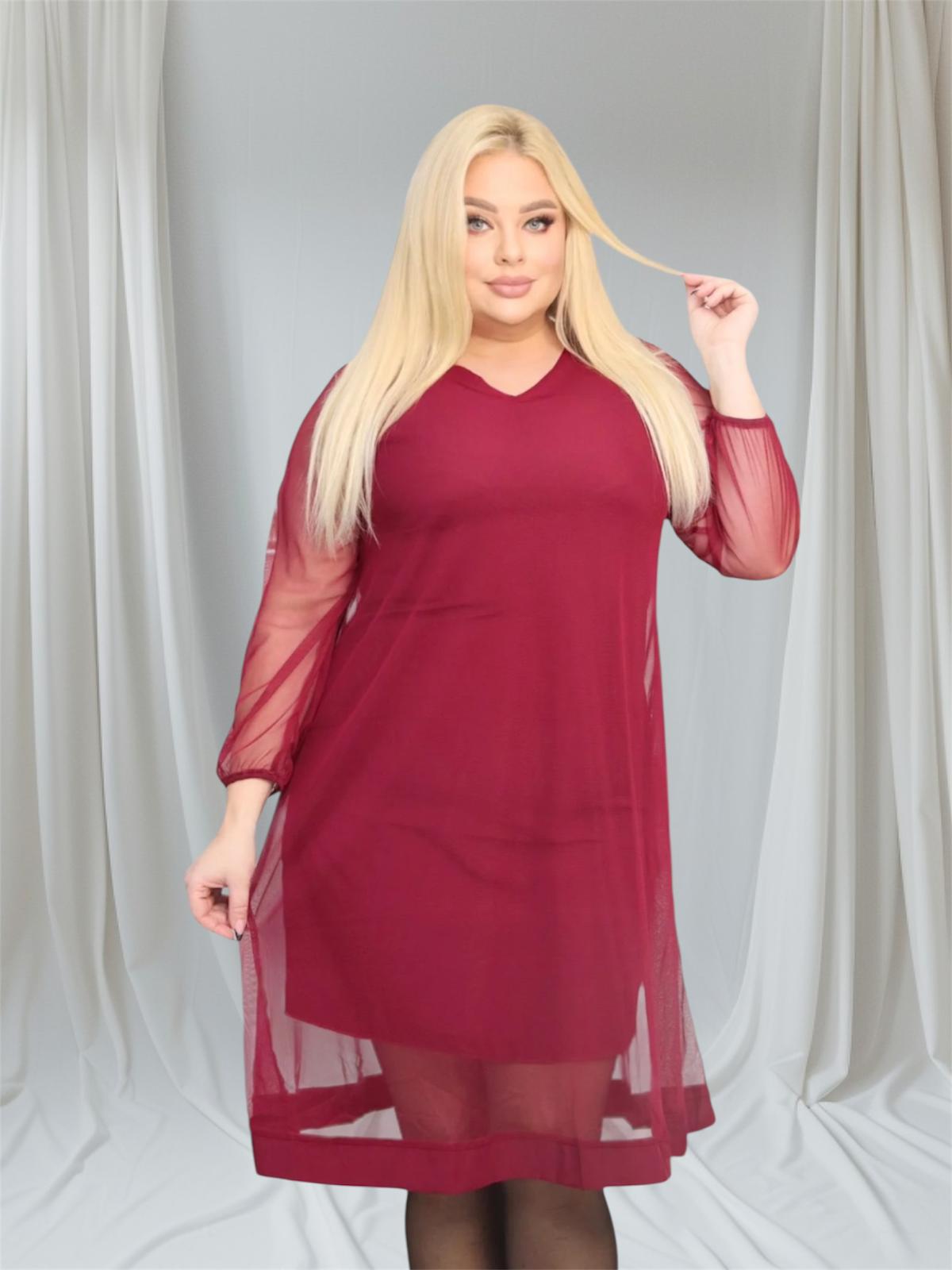 Elegancja spotyka komfort – sukienka Lidia z elastyczną talią i tiulowym wykończeniem czerwona