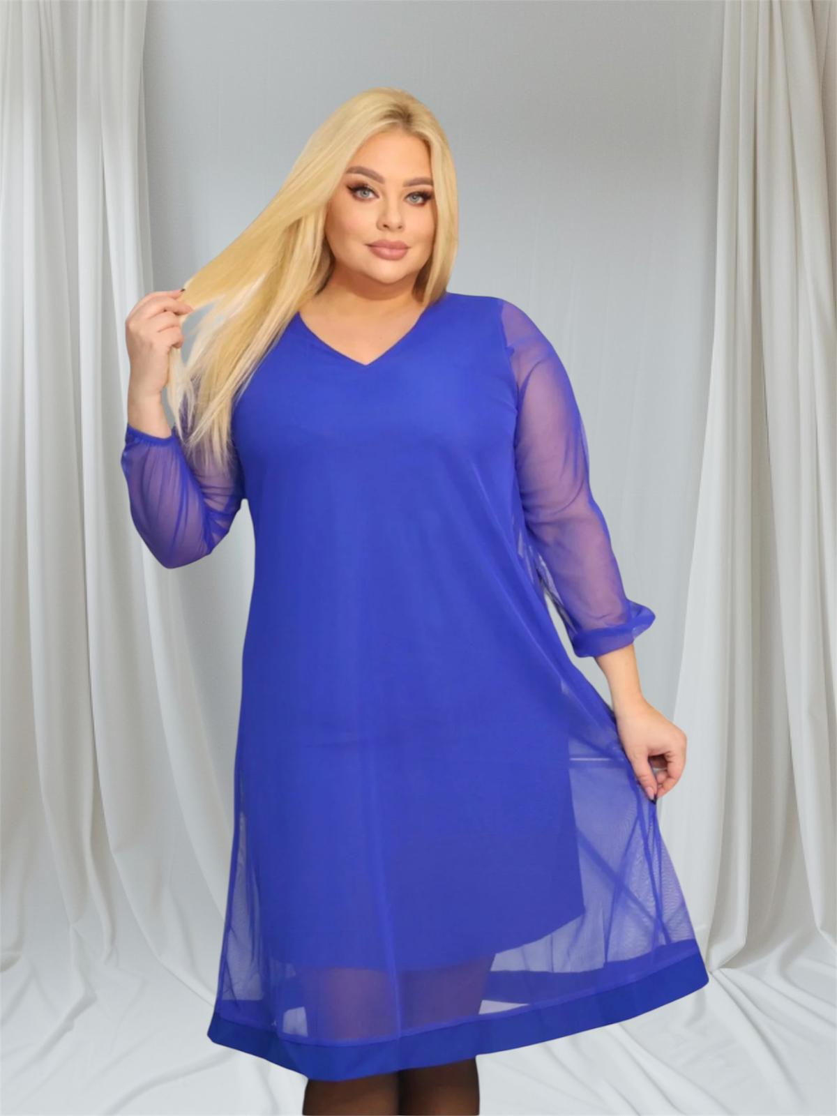 Elegancja spotyka komfort – sukienka Lidia z elastyczną talią i tiulowym wykończeniem chabrowa