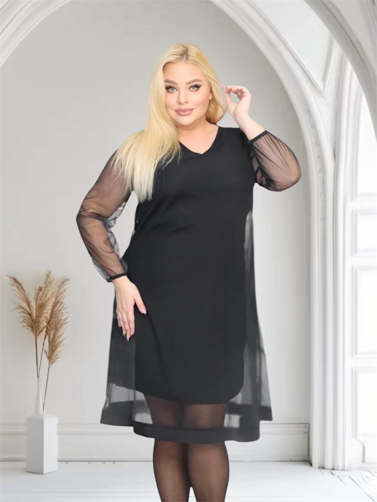 Elegancja spotyka komfort – sukienka Lidia z elastyczną talią i tiulowym wykończeniem czarna