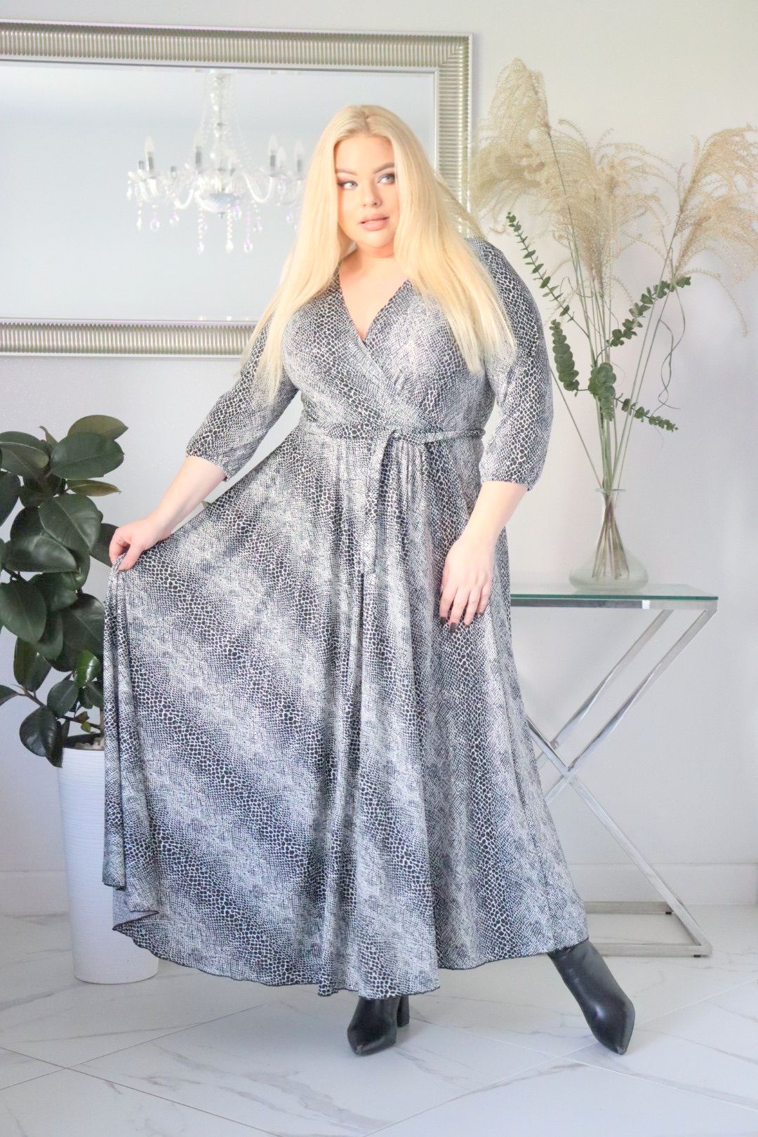 Luksusowa sukienka MAXI w panterkę z subtelnym blaskiem kryształów 💎 Kopertowy dekolt Glamour!!!🌟