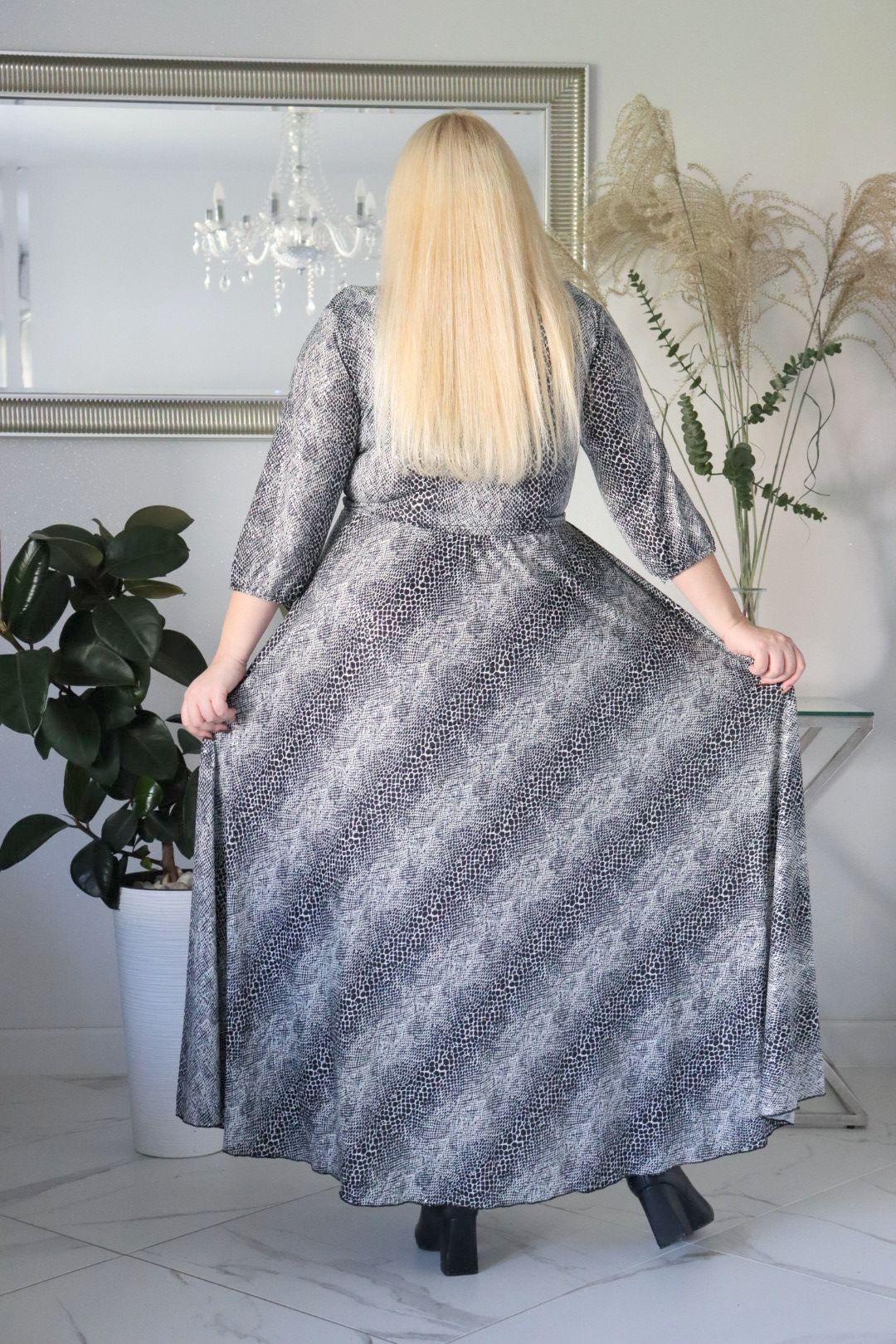 🇵🇱 Polski ProduktDrapieżna sukienka maxi panterka z kryształkami komfortowa dzianina, kopertowy dekolt. P003.