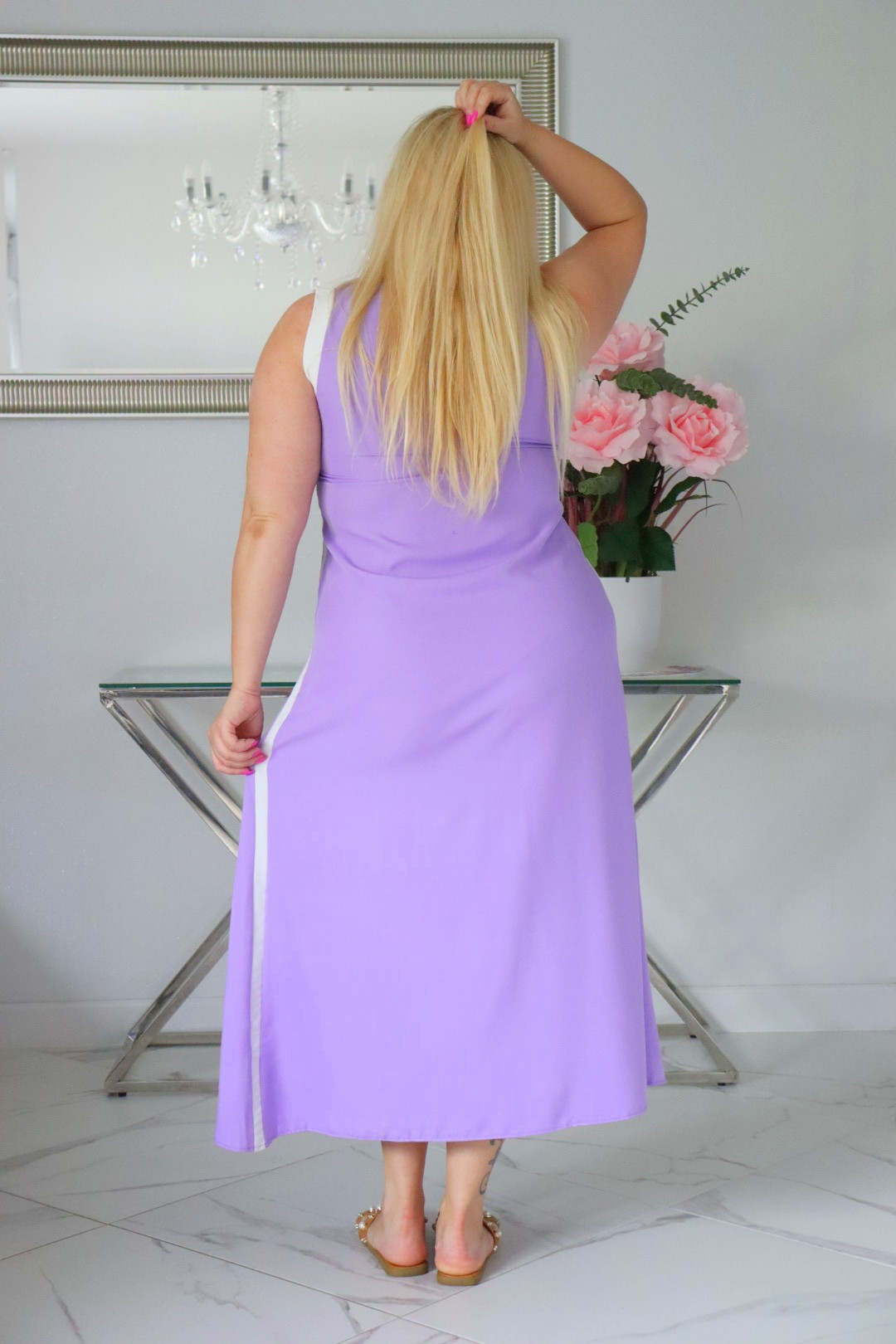 Sukienka wykonana z wysokiej jakości lekkiej tkaniny.