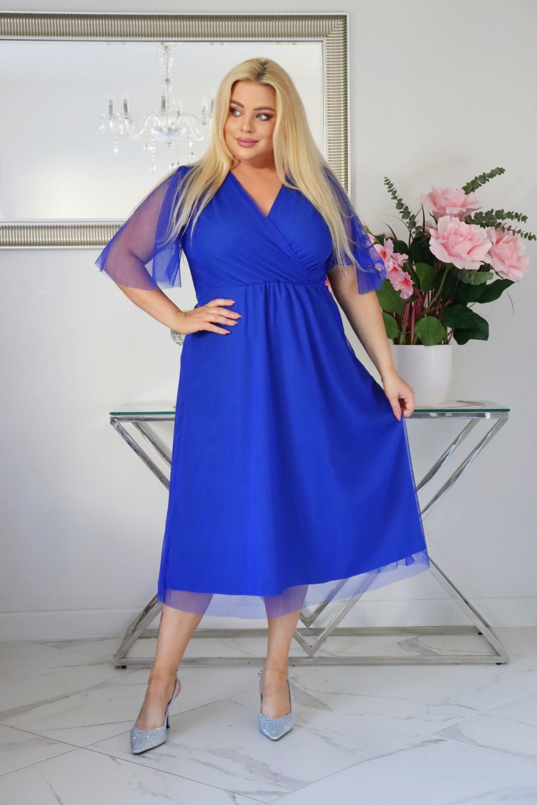 Elegancja spotyka komfort – sukienka Lidia z elastyczną talią i tiulowym wykończeniem chabrowa