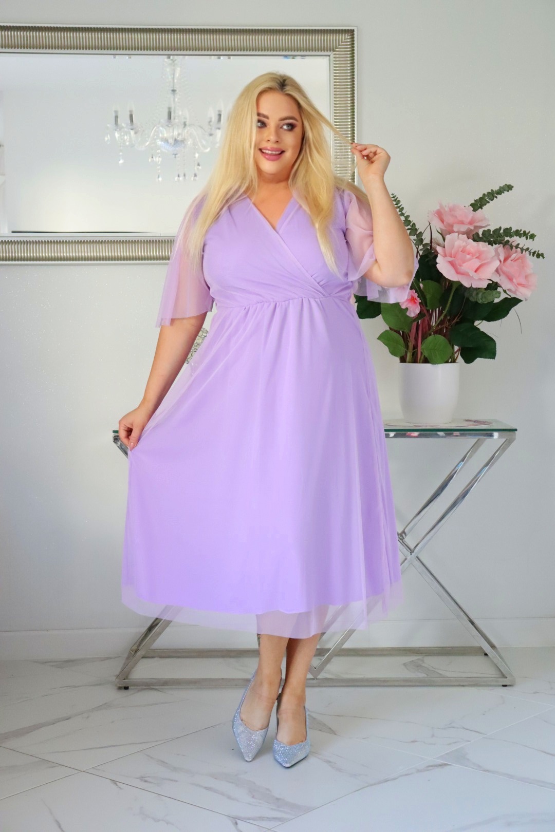 ⭐⭐⭐⭐⭐ 5.0Bestseller163+ sprzedanych!🇵🇱 Polski ProduktElegancja spotyka komfort – sukienka Lidia z elastyczną talią i tiulowym wykończeniem liliowa