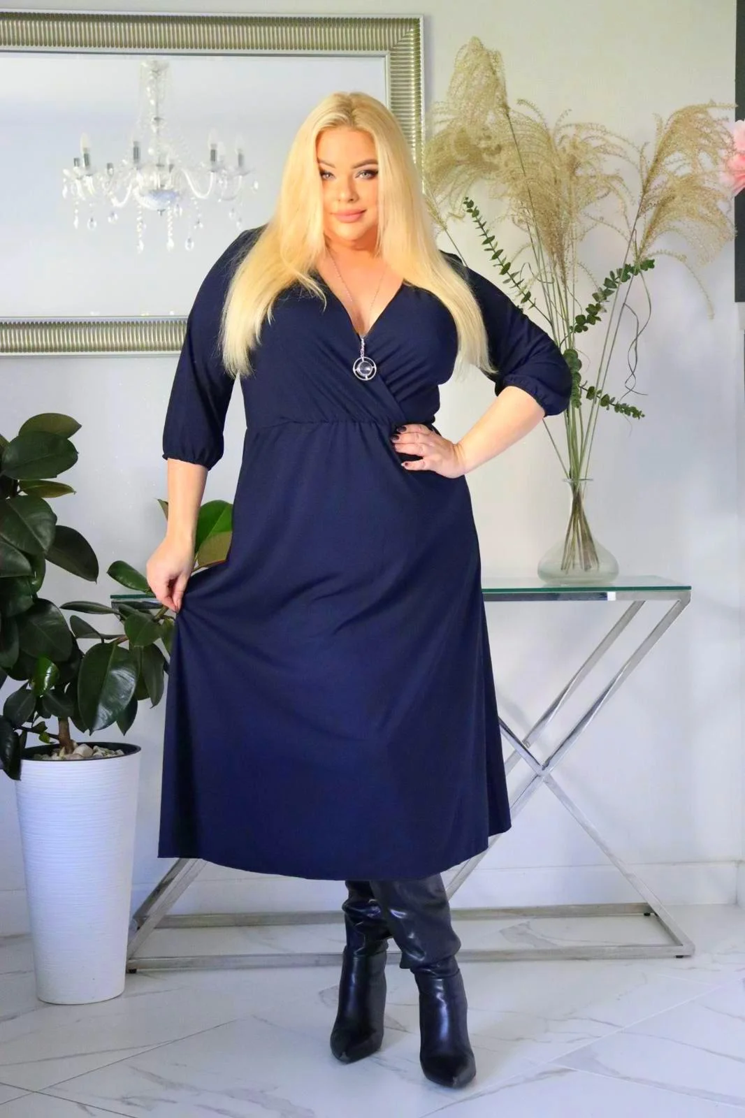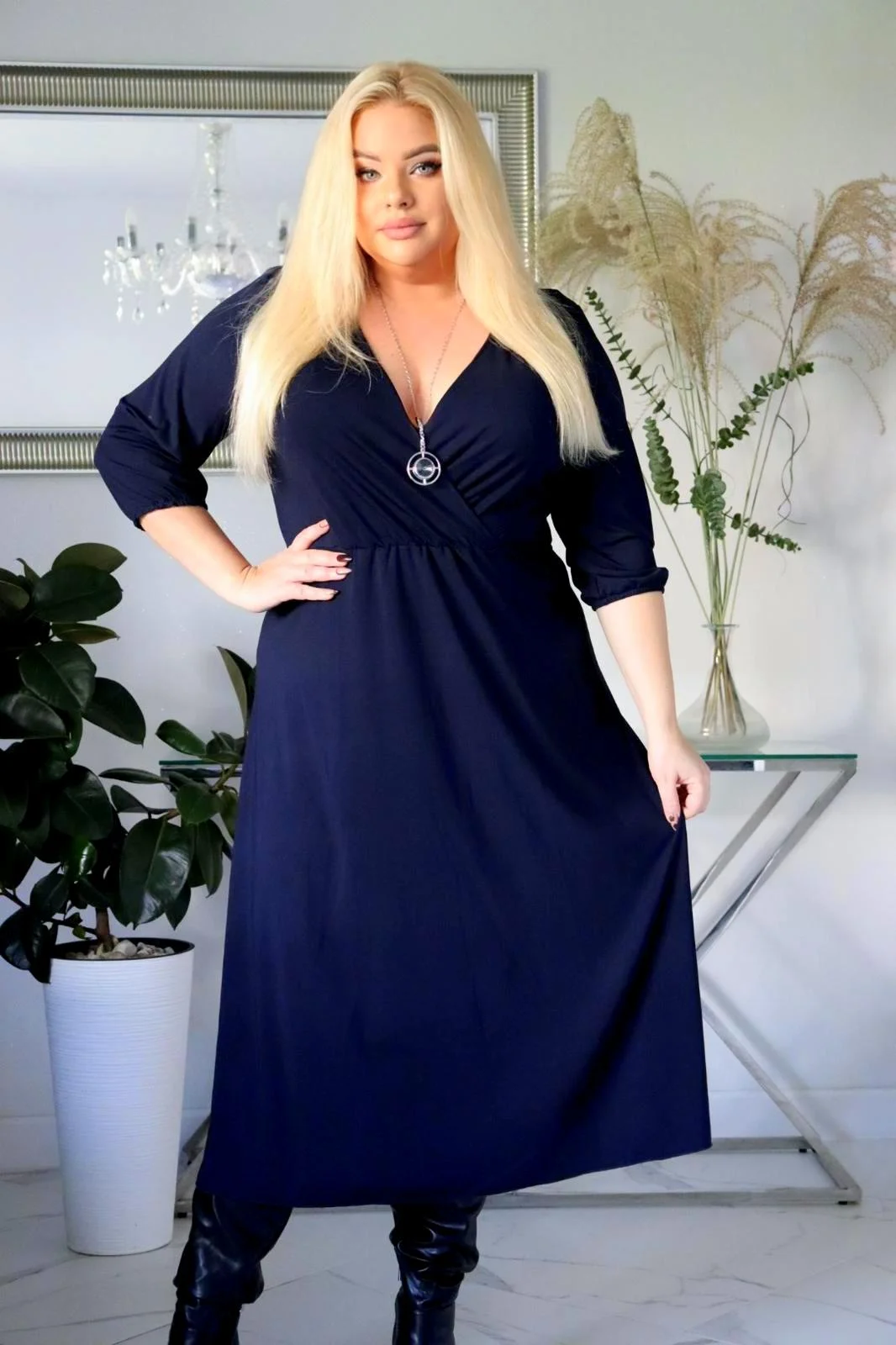 „Genialny duet! Dzianinowa sukienka Hazel i idealnie dobrany naszyjnik, który dostajesz w komplecie! ” GRANATOWA.