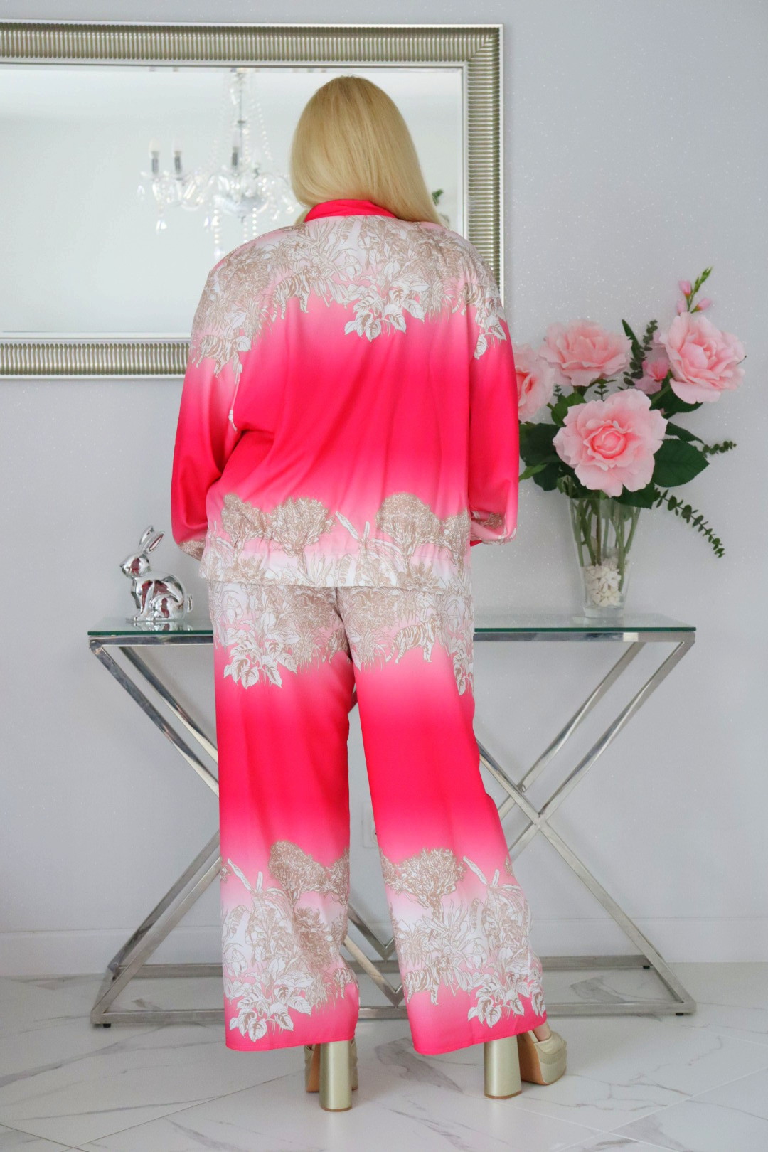 GLAMOUR komplet bluza na zamek + spodnie 100% naturalny skład PRINT FUKSJA