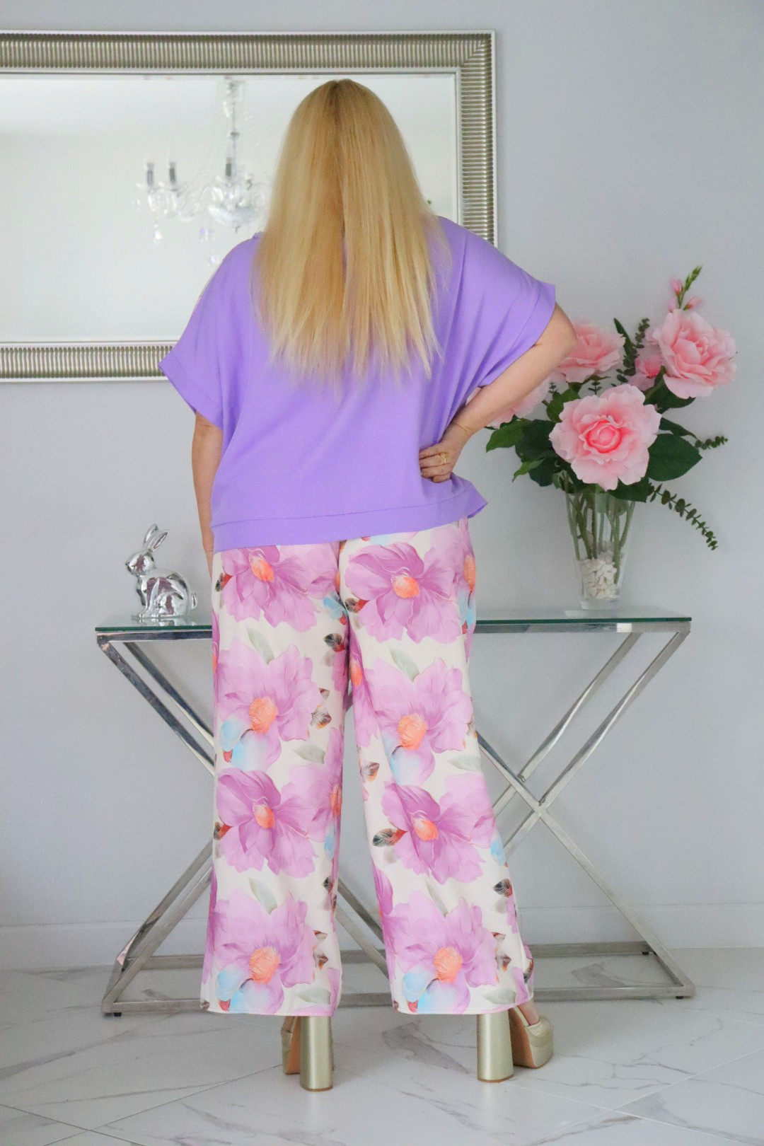Propozycja dla kobiet, które cenią połączenie komfortu i klasy. Zestaw składający się z luźnej bluzki oraz zwiewnych spodni to idealny wybór na ciepłe dni, eleganckie spotkania i codzienne stylizacje z nutą romantyzmu.