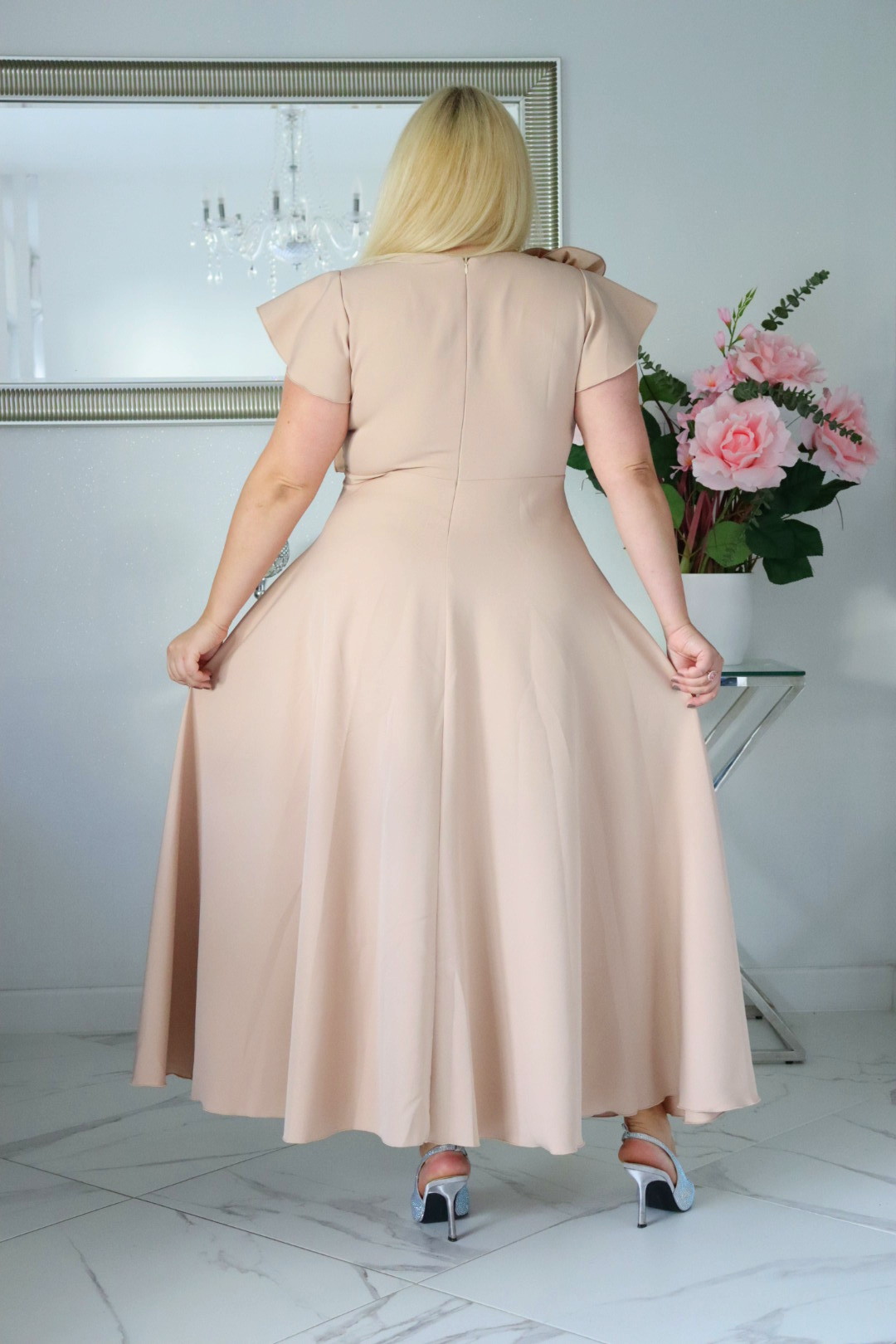 Bestseller77+ sprzedanych!🇵🇱 Polski ProduktOlśniewająca sukienka „Frezja” z kwiecistą falbaną i rozkloszowanym dołem gwarantuje spektakularny „efekt glamour”! NUDE