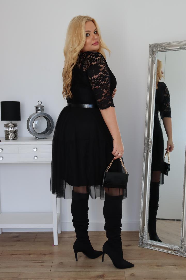 🇵🇱 Polski ProduktSukienka Adriana rozkloszowana z tiulu z kopertowym dekoltem i koronkową górą czarna