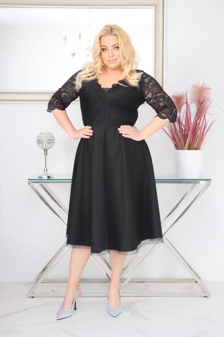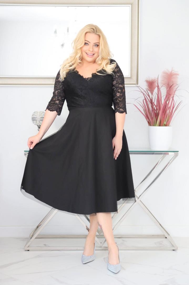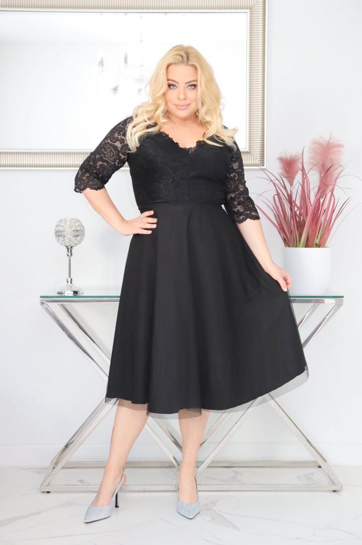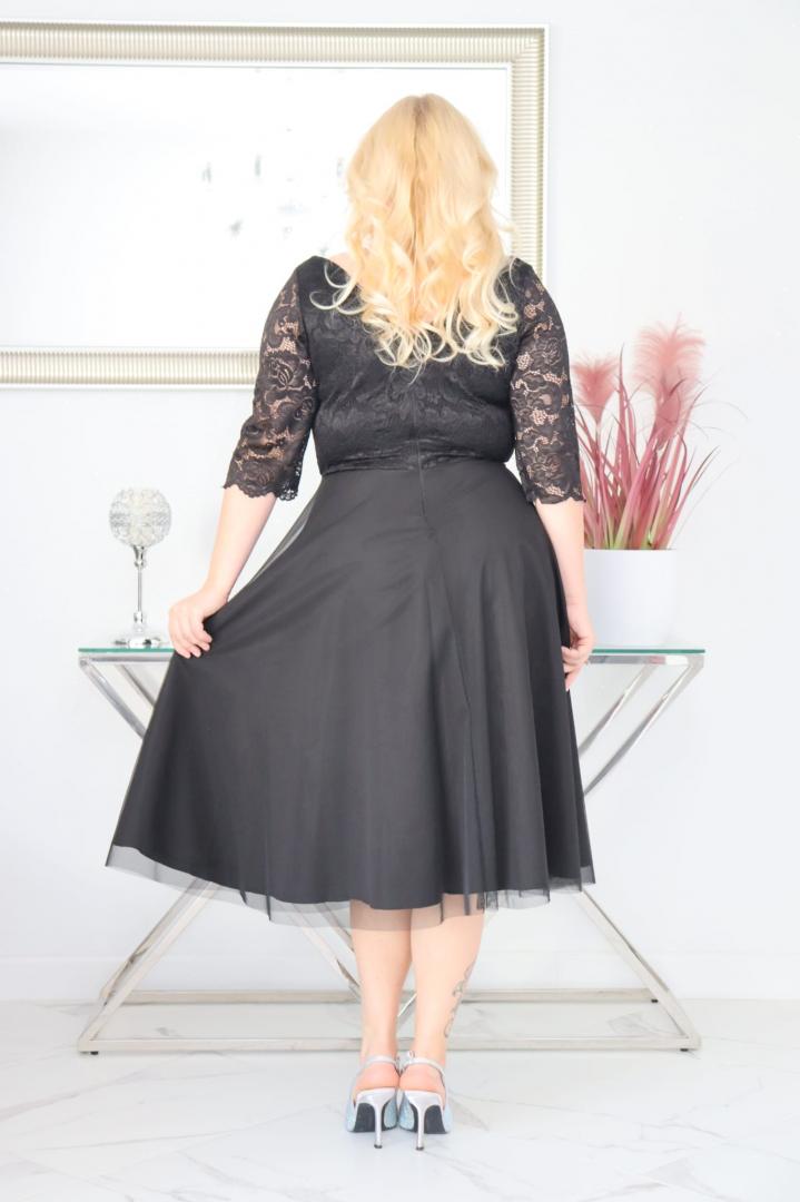 🇵🇱 Polski ProduktSukienka Ariana rozkloszowana elastyczna koronka koło z tiulu czarna
