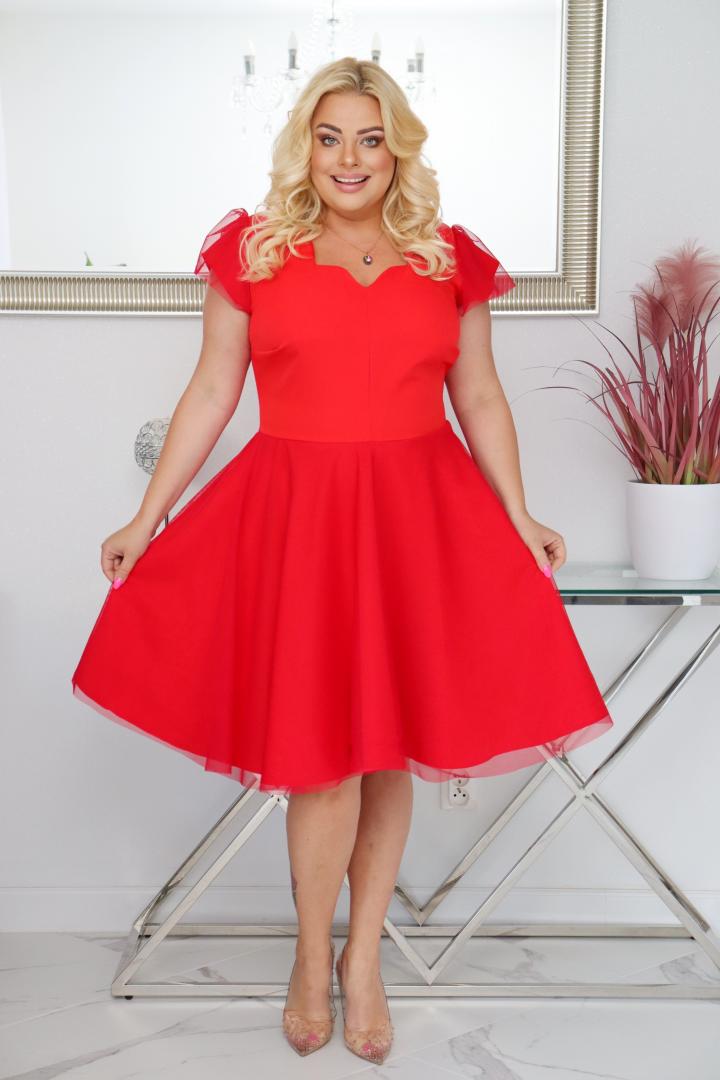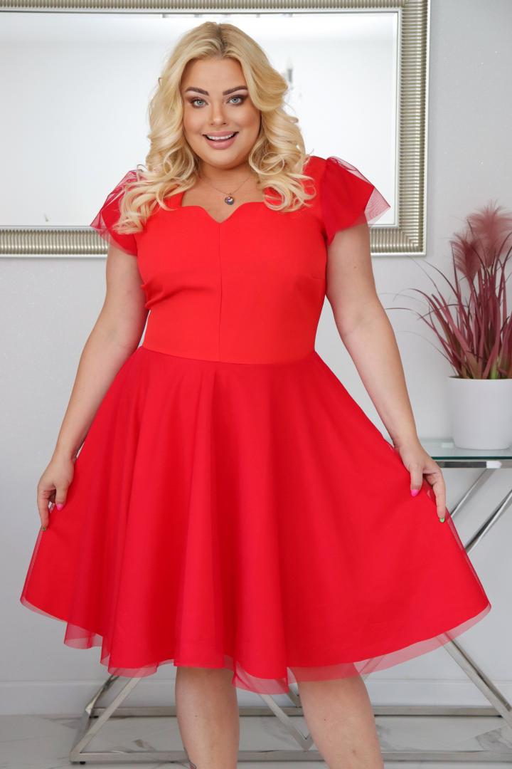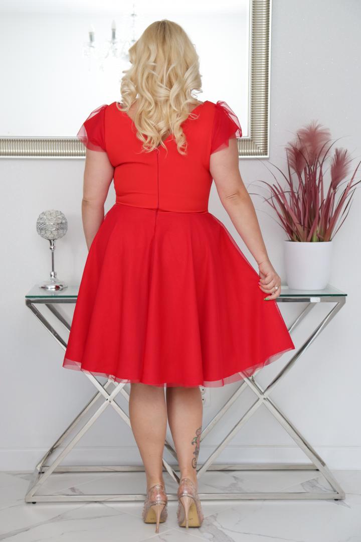 Sukienka Beti rozkloszowana z tiulowym dołem czerwona