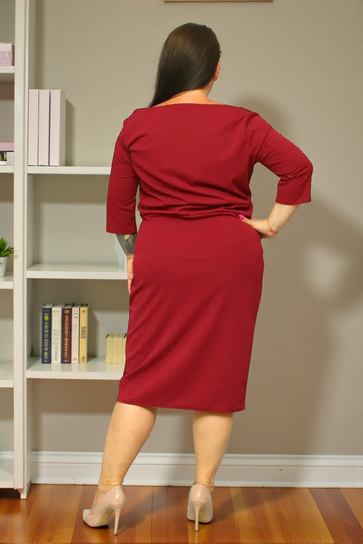 Sukienka jest wykonana z wysokiej jakości dzianiny, która charakteryzuje się rozciągliwością około 4 cm. Materiał nie mechaci się i nie kulkuje bo stawiamy zawsze i tylko na jakość.