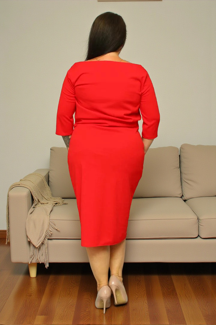 Sukienka jest wykonana z wysokiej jakości dzianiny, która charakteryzuje się rozciągliwością około 4 cm. Materiał nie mechaci się i nie kulkuje bo stawiamy zawsze i tylko na jakość.