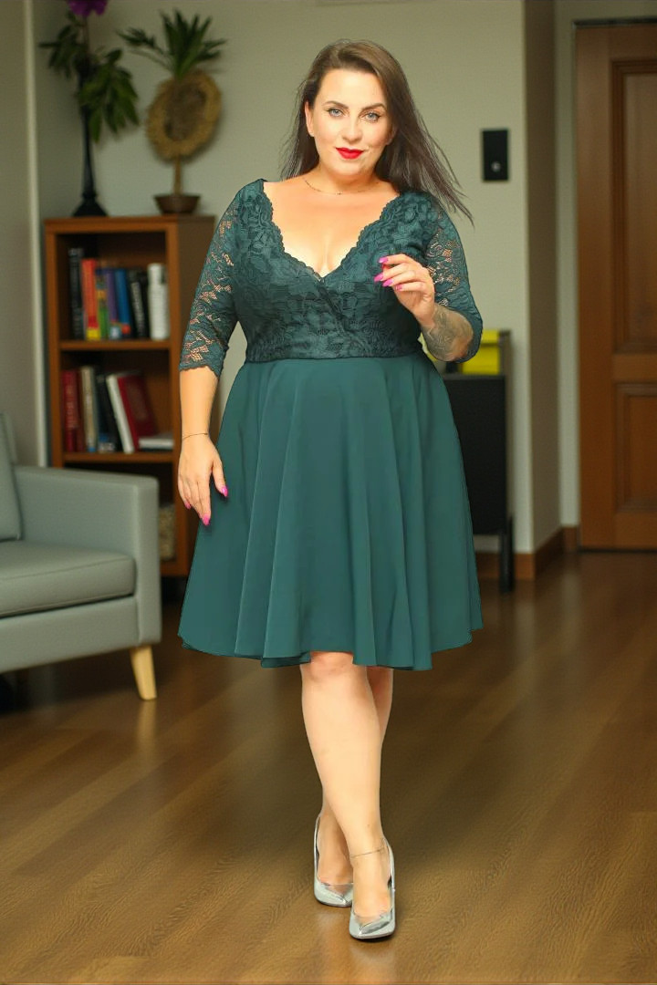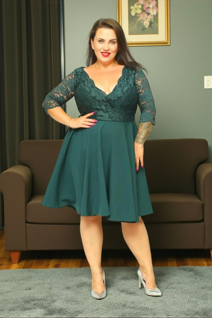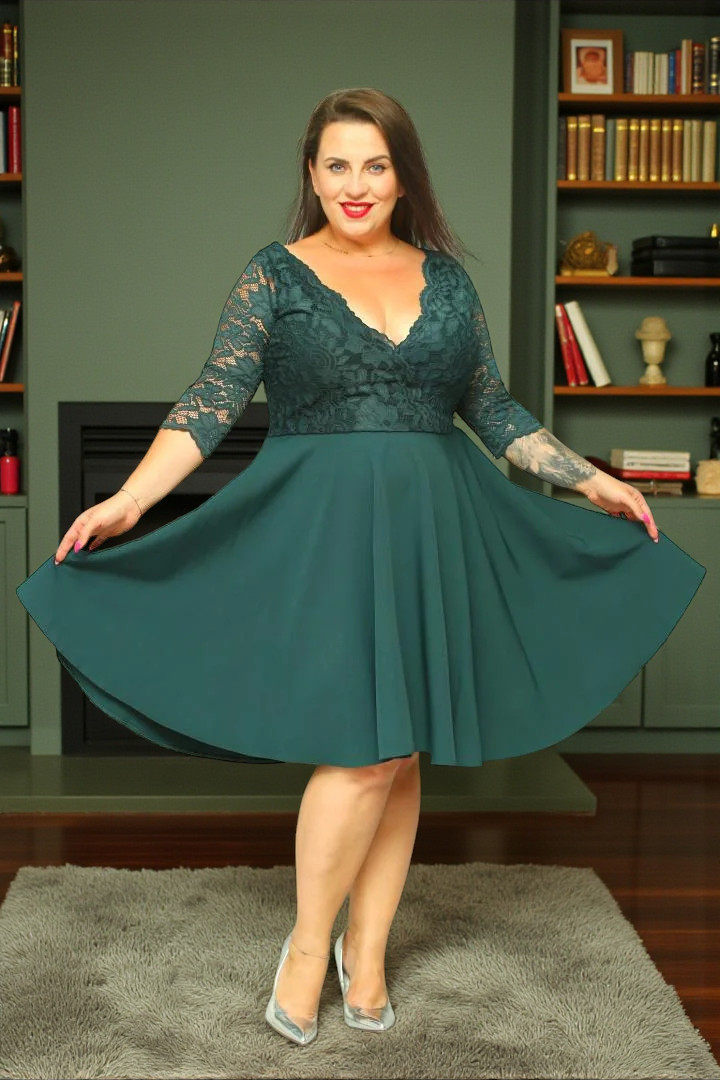 🇵🇱 Polski ProduktSukienka Daniella rozkloszowana ekskluzywna kopertowy dekolt koronka butelkowa zieleń kwiatki