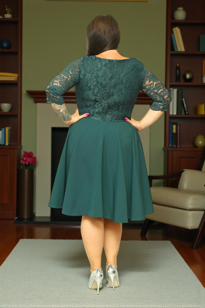 Góra sukienki jest wykonana z eleganckiej miłej w dotyku koronki, która nadaje sukience ekskluzywnego wyglądu.