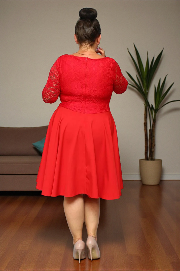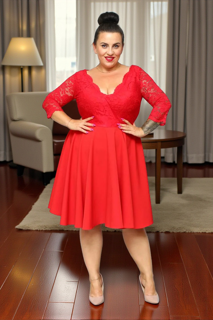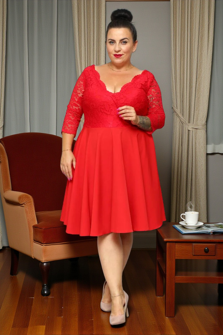 Sukienka Daniella rozkloszowana ekskluzywna kopertowy dekolt koronka czerwona kwiatki