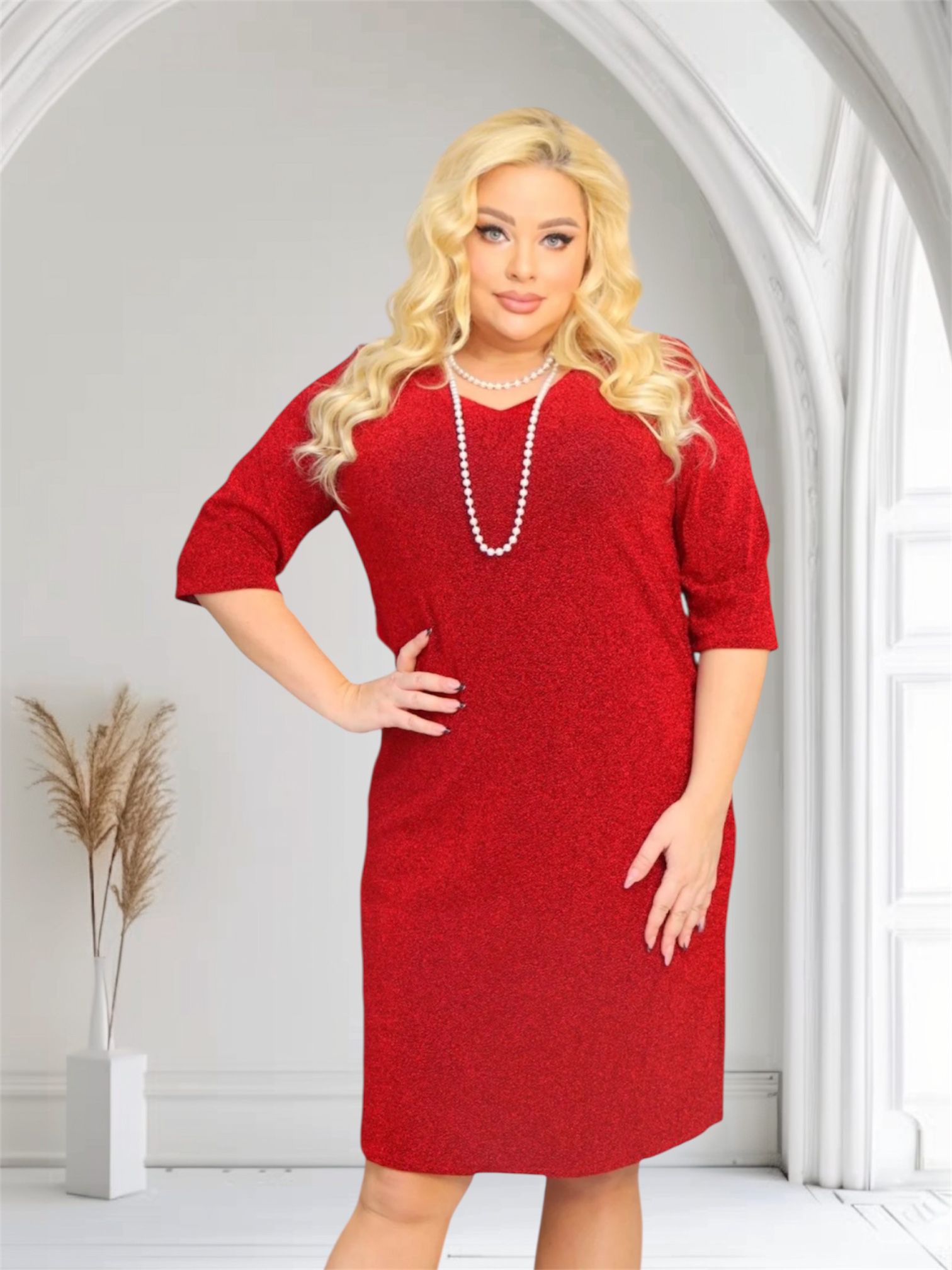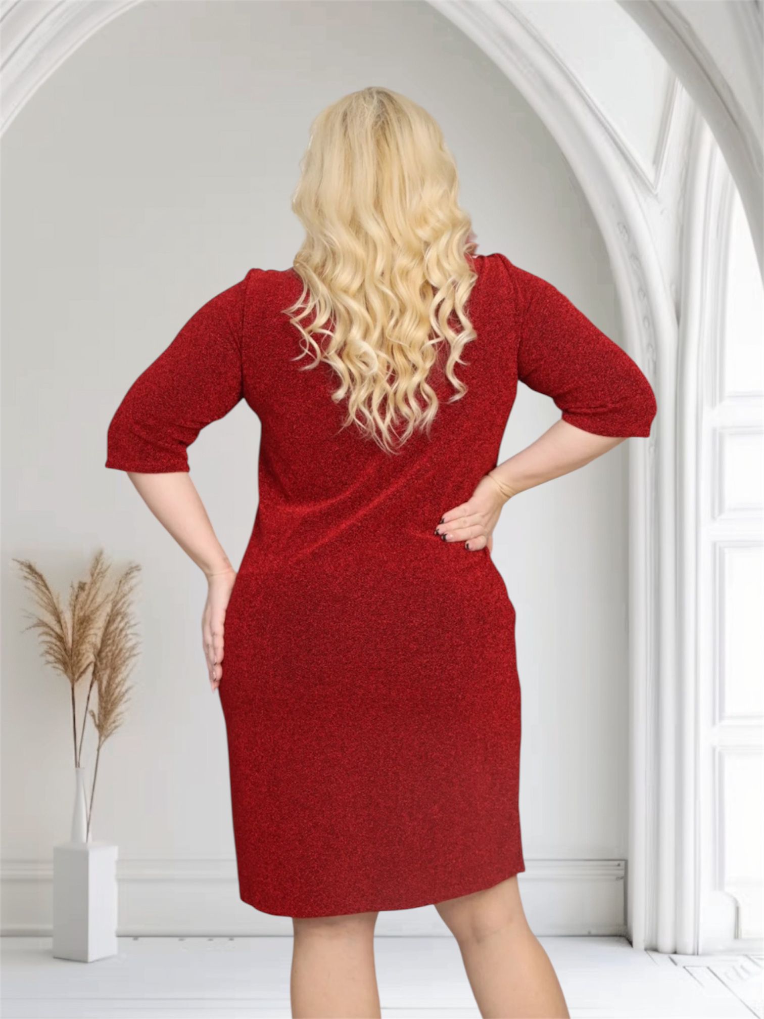 🇵🇱 Polski ProduktSukienka Dina z dzianiny brilliance z perłami GRATIS czerwona
