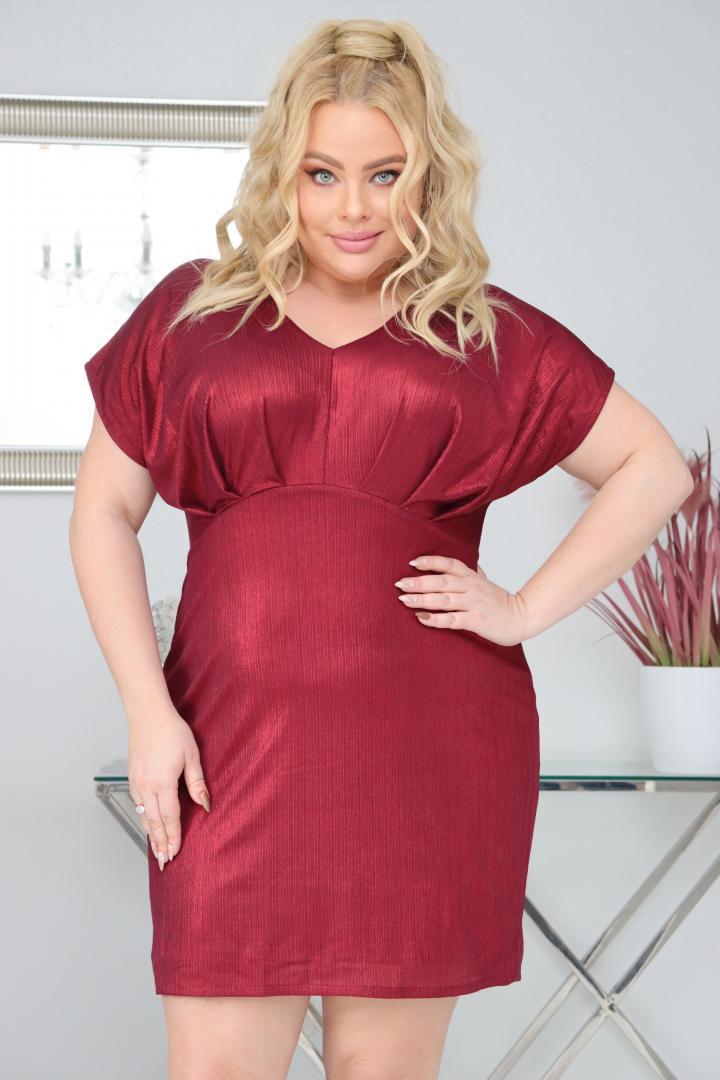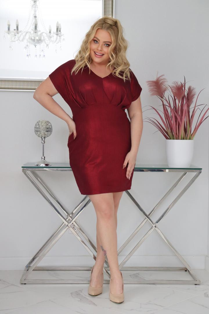 Sukienka Diora romantyczny dekolt z zakładkami mieniąca bordowa