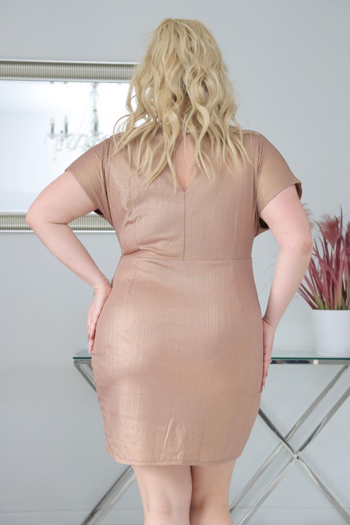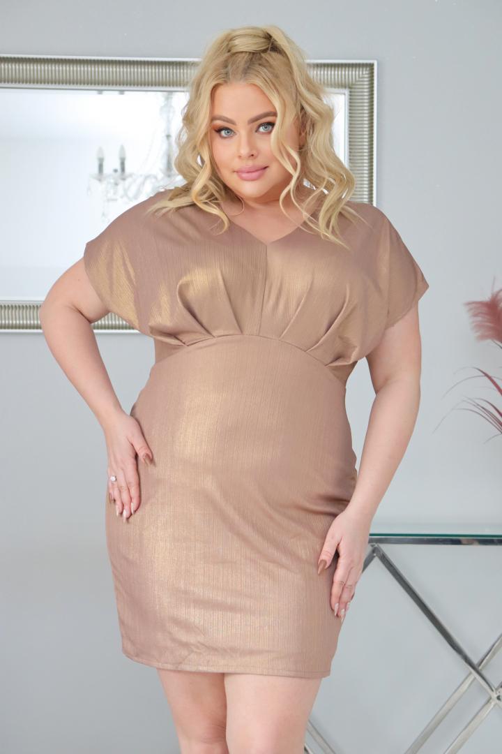 Sukienka Diora romantyczny dekolt z zakładkami mieniąca złota