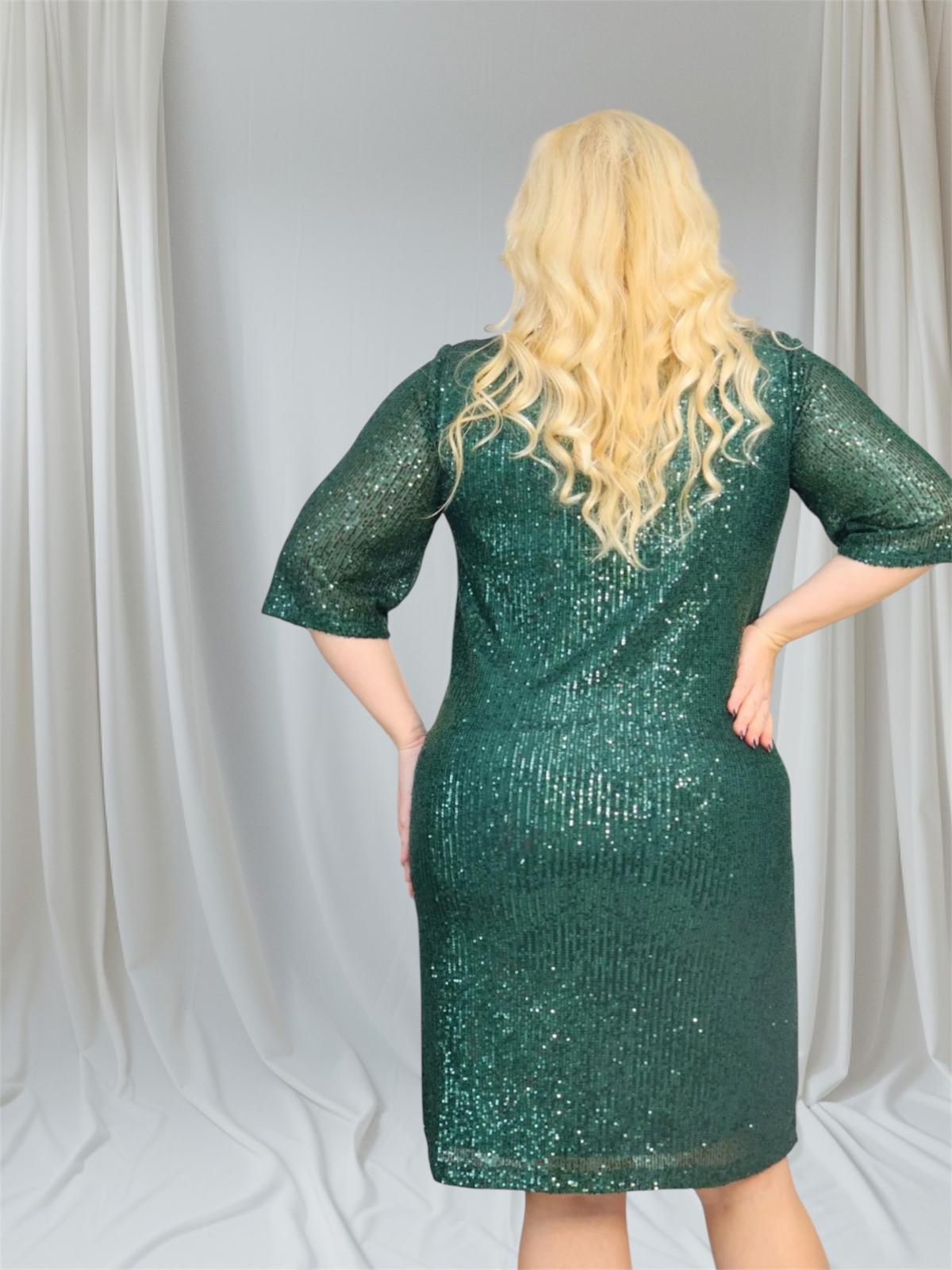 🇵🇱 Polski ProduktSukienka Eletra pudełkowa cekinowa butelkowa zieleń