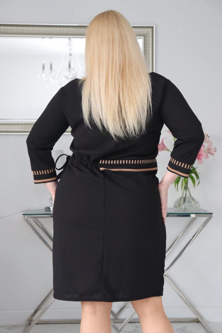 Sukienka Elif z ozdobną brązowo-czarną taśmą i regulowanym ściągaczem w pasie czarna
