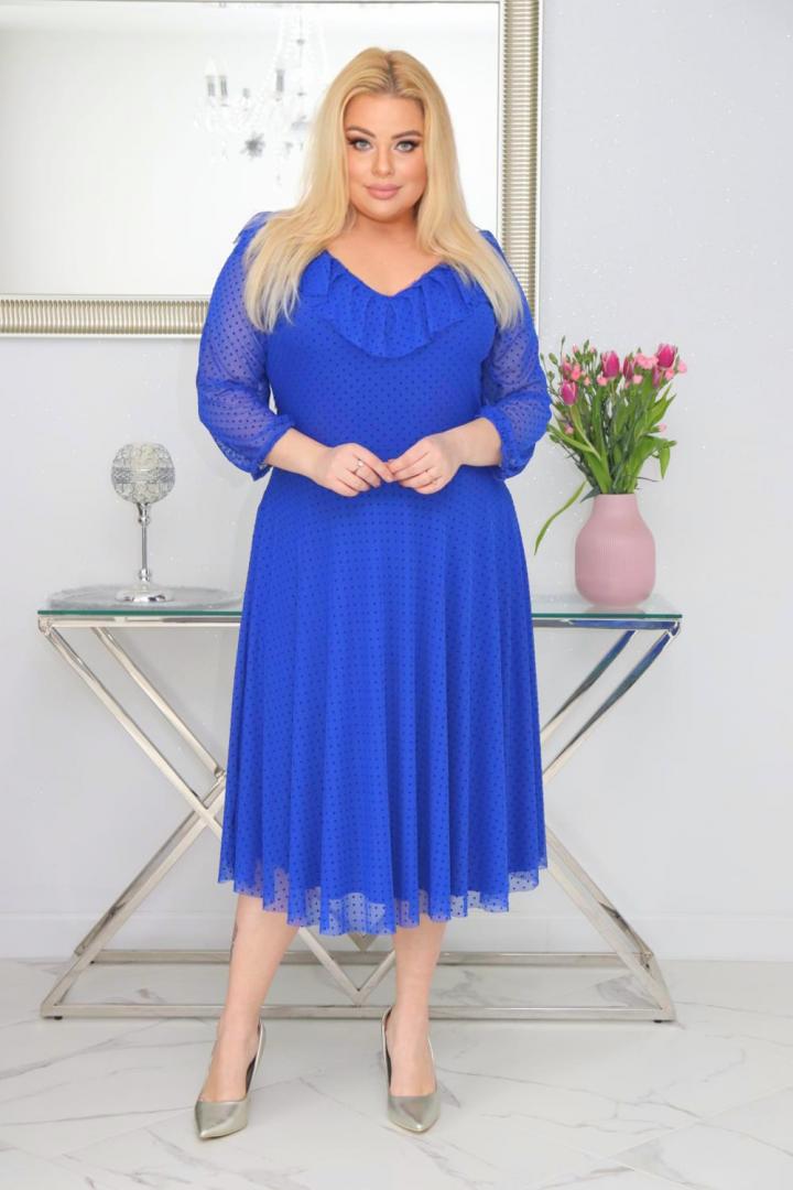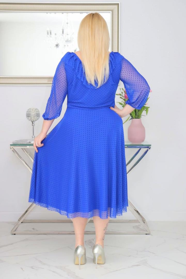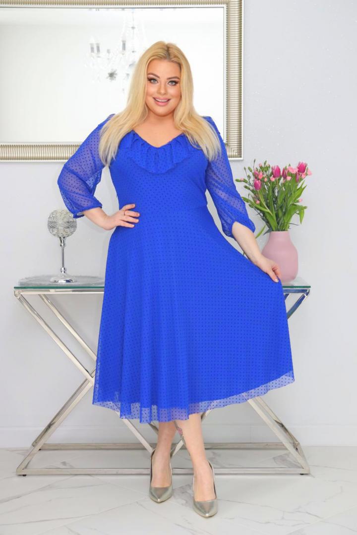 🇵🇱 Polski ProduktSukienka Fabiola lekka zwiewna rozkloszowana tiulowa w groszki chabrowa
