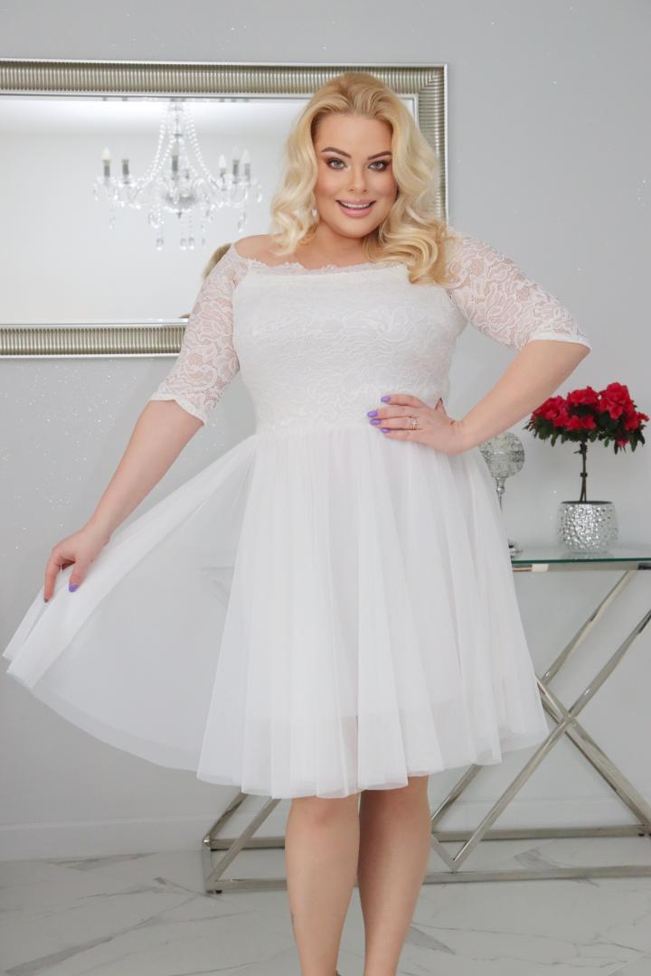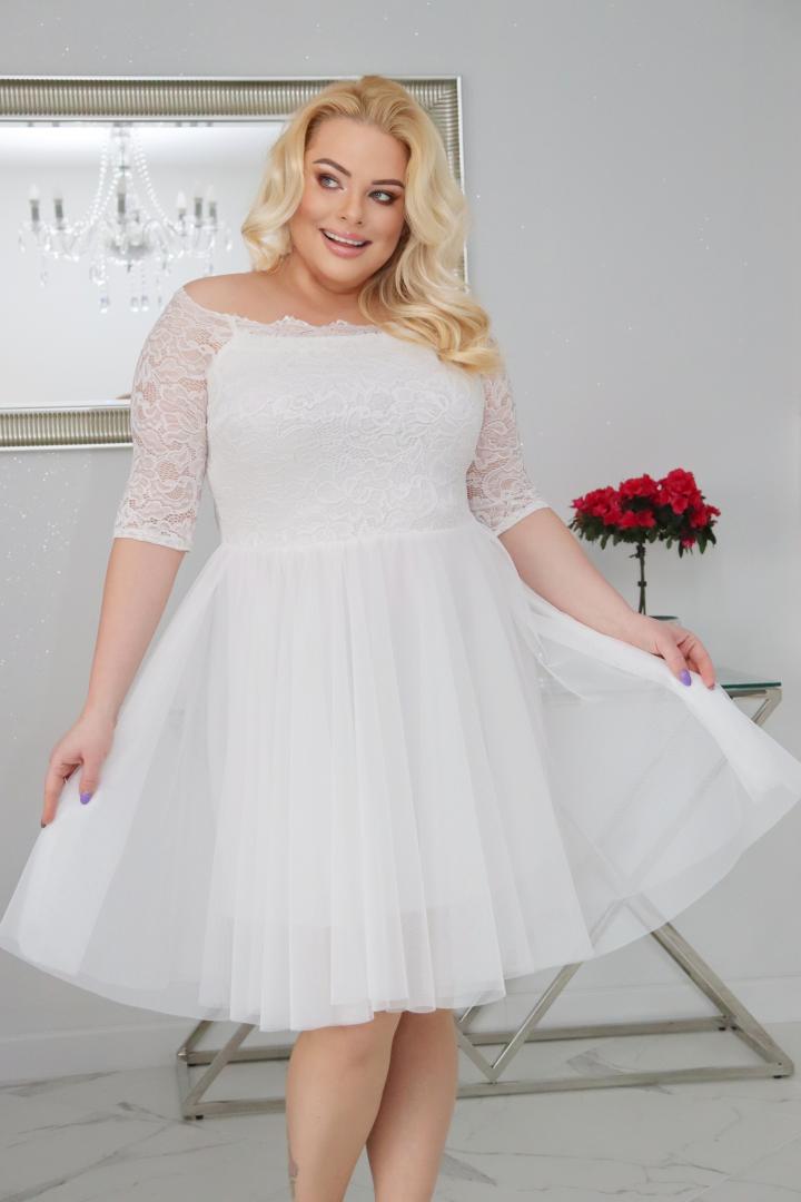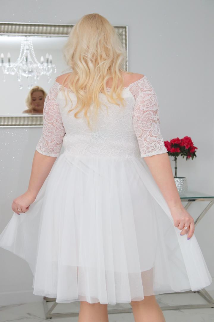 Sukienka Femm rozkloszowana koronkowa góra i tiulowy dół biała