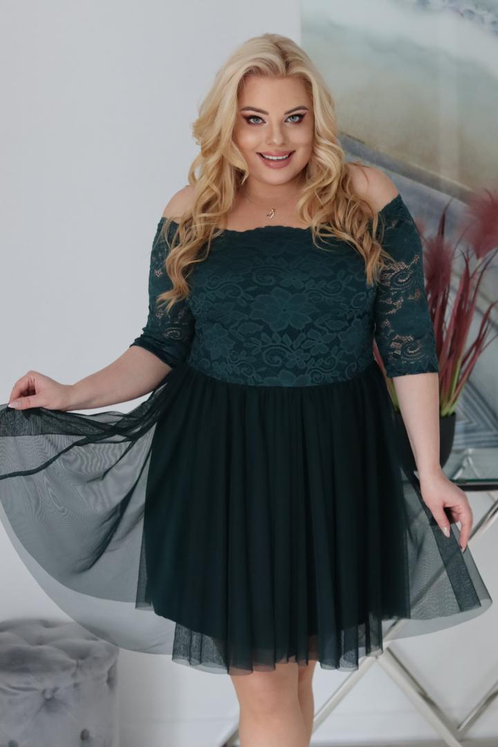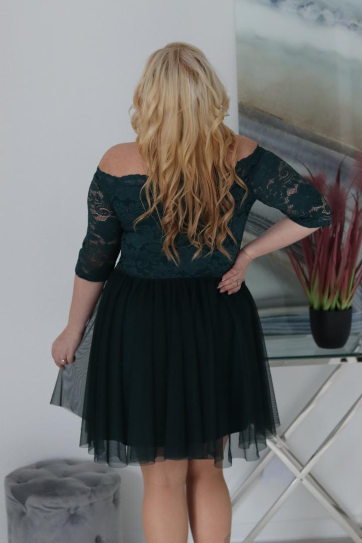🇵🇱 Polski ProduktSukienka Femm rozkloszowana koronkowa góra i tiulowy dół butelkowa zieleń