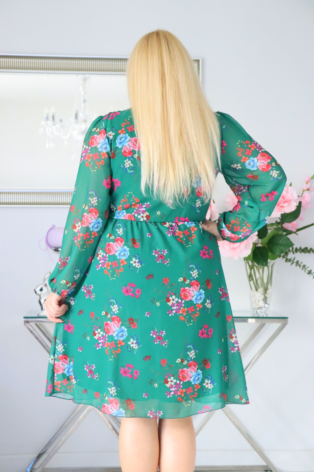 🇵🇱 Polski ProduktSukienka FERVENA trapezowa żorżeta szyfon w kwiaty wzór numer 6