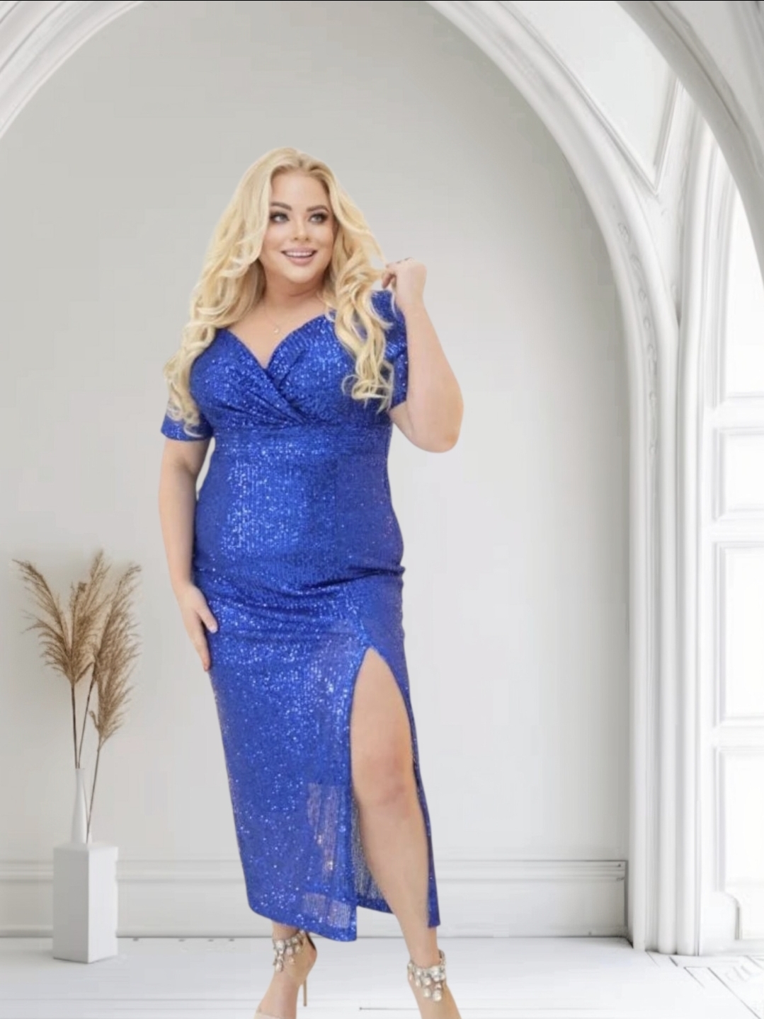 Sukienka Golden maxi ołówkowa cekinowa kopertowy dekolt CEKINY chabrowa