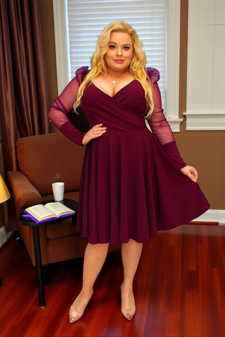 Sukienka Jessica rozkloszowana rękawy z tiulu bufki bordo