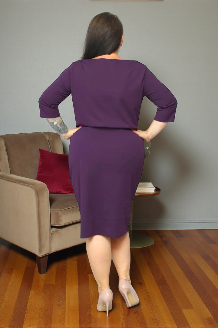 Sukienka jest wykonana z wysokiej jakości dzianiny, która charakteryzuje się rozciągliwością około 4 cm. Materiał nie mechaci się i nie kulkuje bo stawiamy zawsze i tylko na jakość.