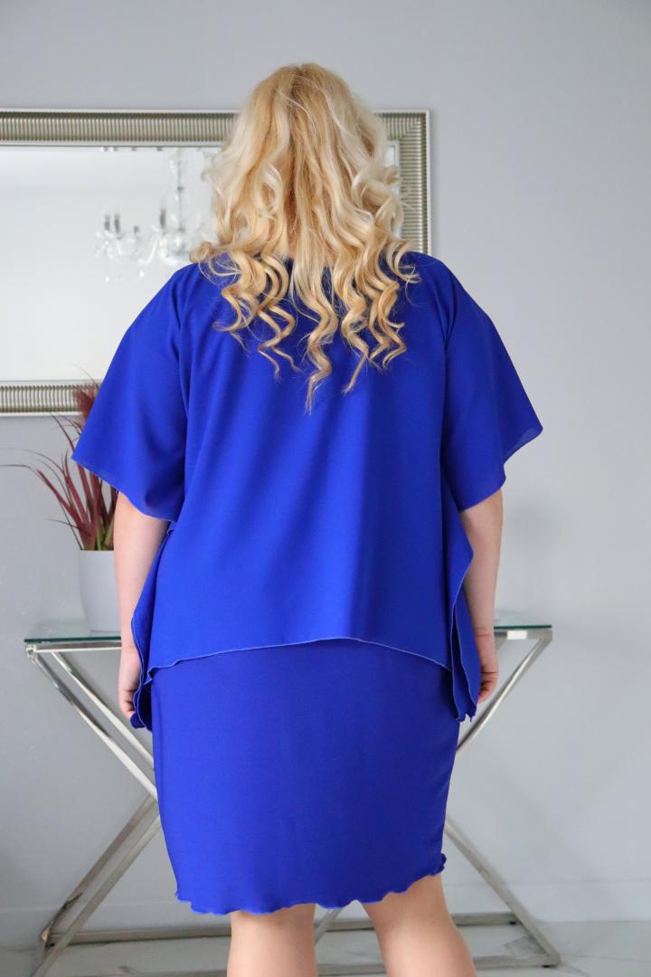 Sukienka Kama z prostokątną szyfonową narzutką chabrowa