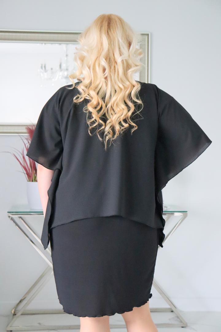 Sukienka Kama z prostokątną szyfonową narzutką czarna