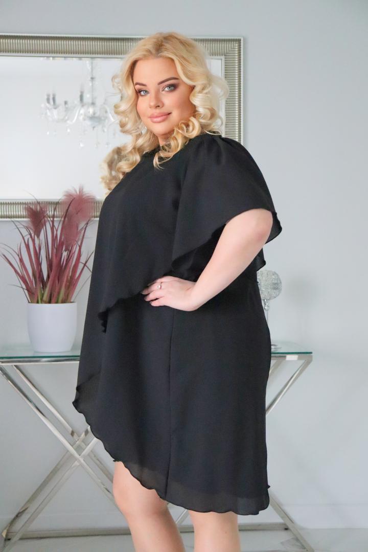 🇵🇱 Polski ProduktSukienka Kama z tulipanową szyfonową narzutką czarna