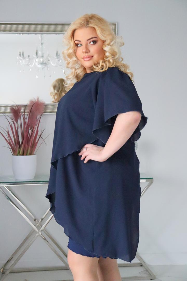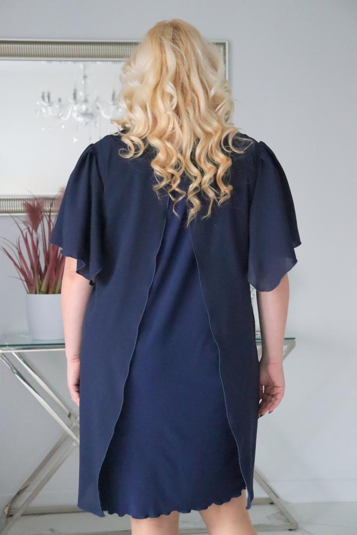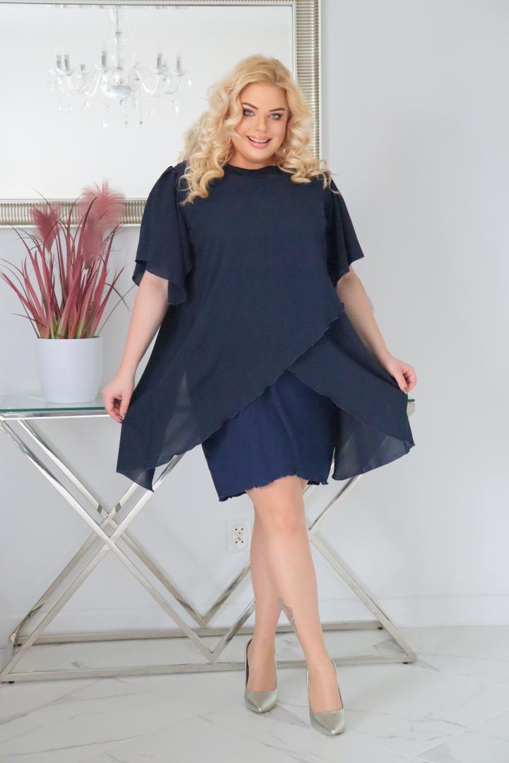 Sukienka Kama z tulipanową szyfonową narzutką granatowa