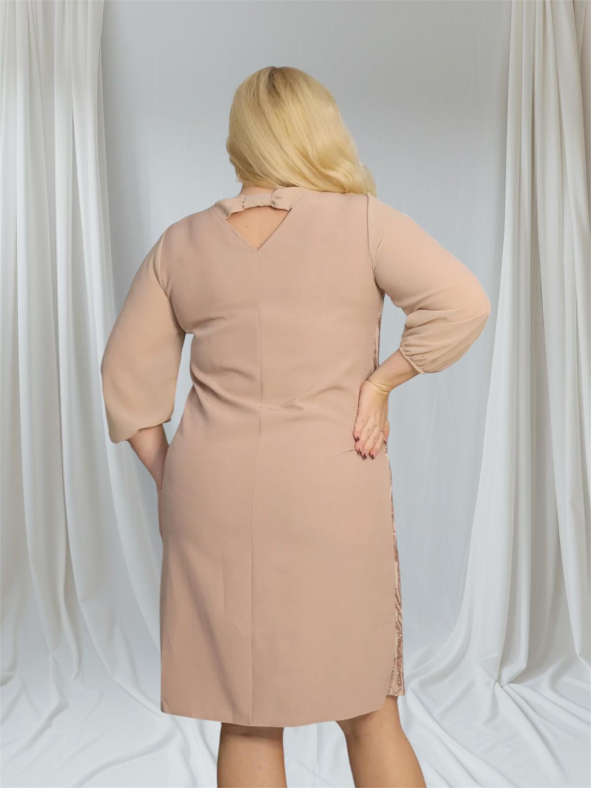 Sukienka jest wykonana z wysokiej jakości dzianiny cekinowej, która charakteryzuje się rozciągliwością około 4 cm.