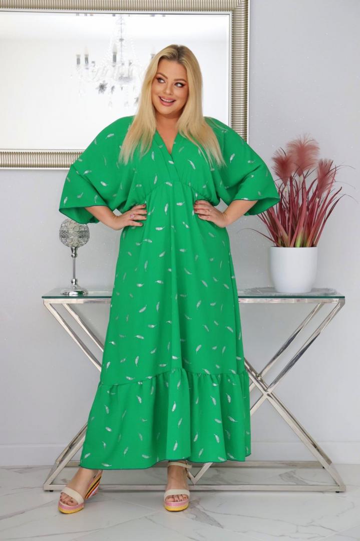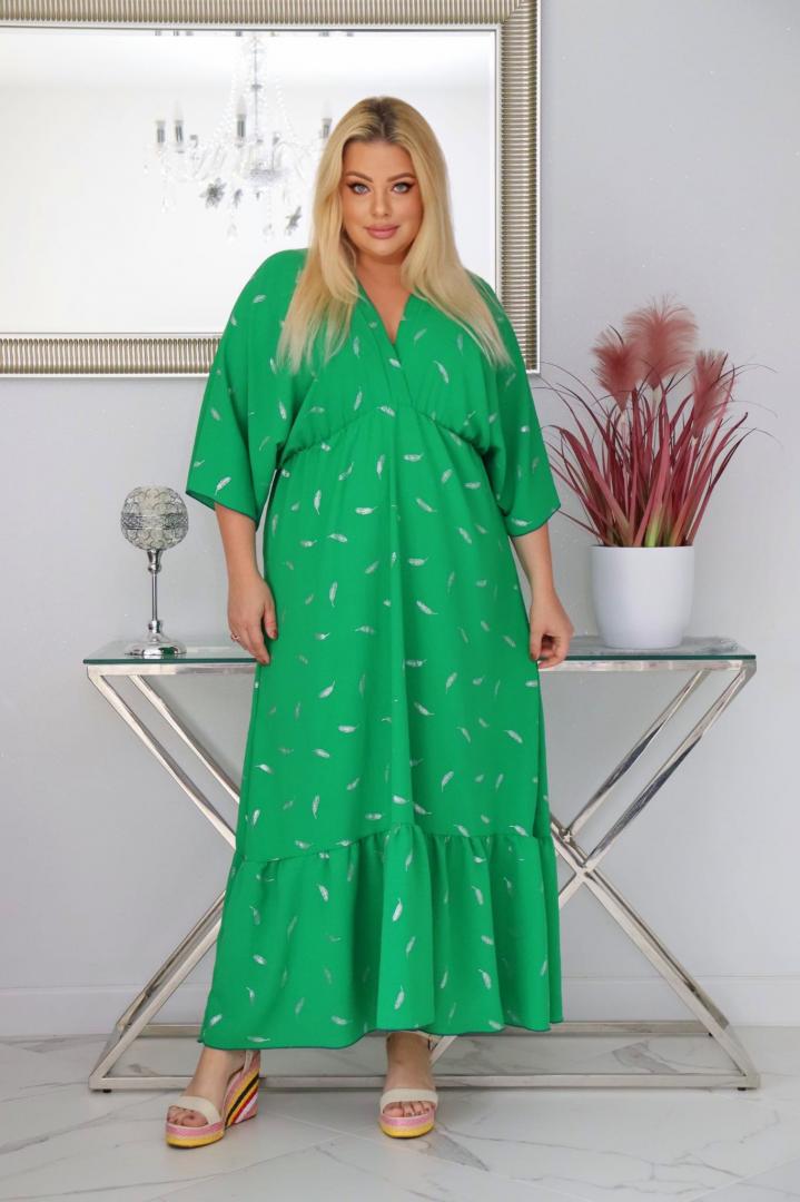 🇵🇱 Polski ProduktSukienka kimono Rita wygodna i szykowna wiskoza piórka zielona