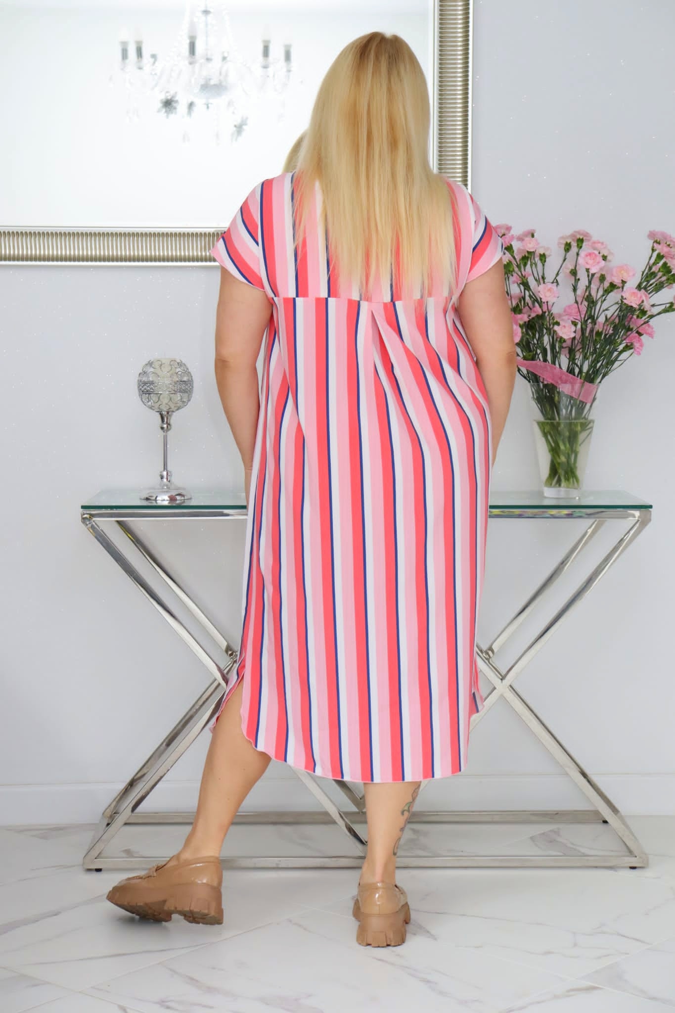 Sukienka Kloe klasyczna niezwykle wygodna i szykowna różowe paski