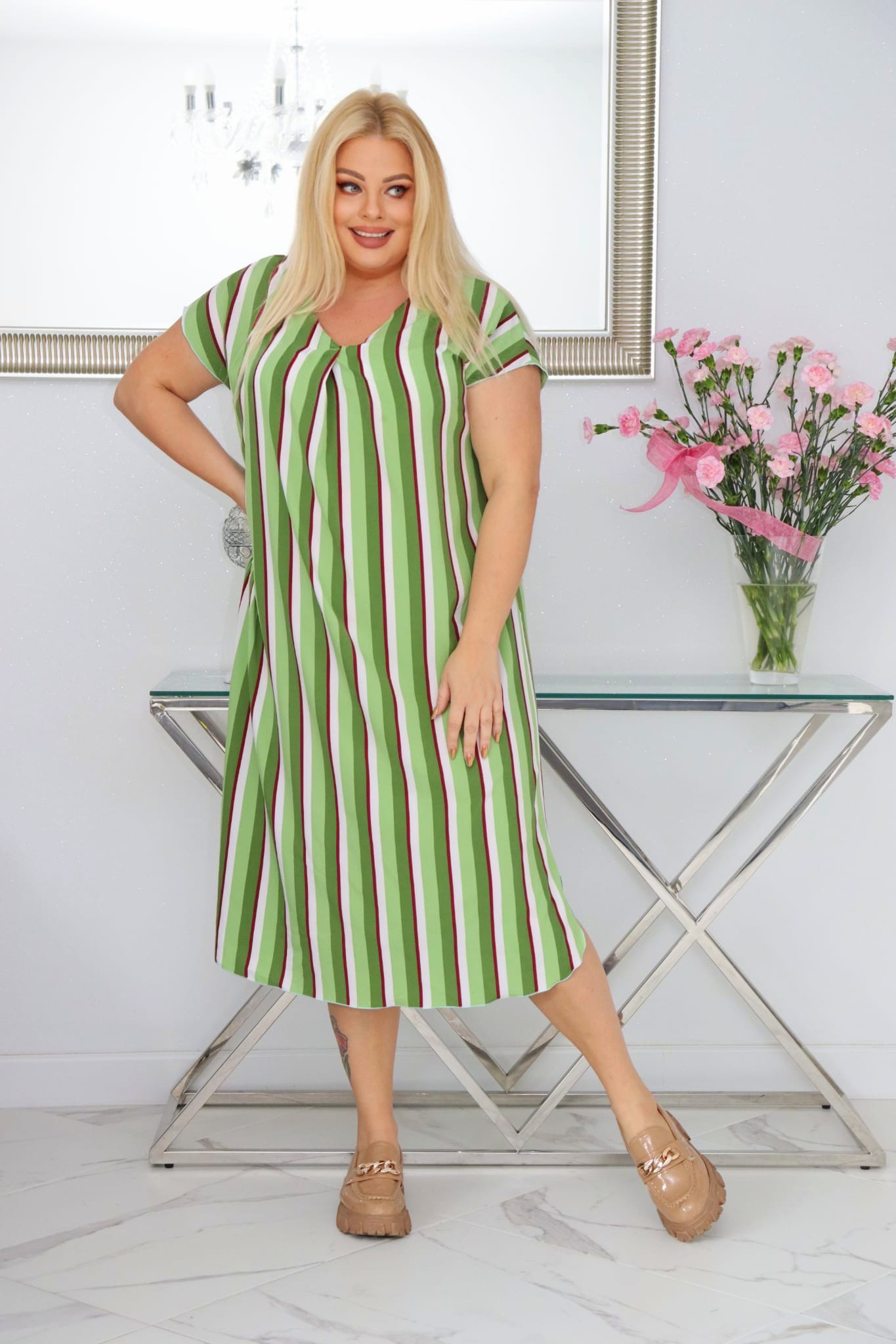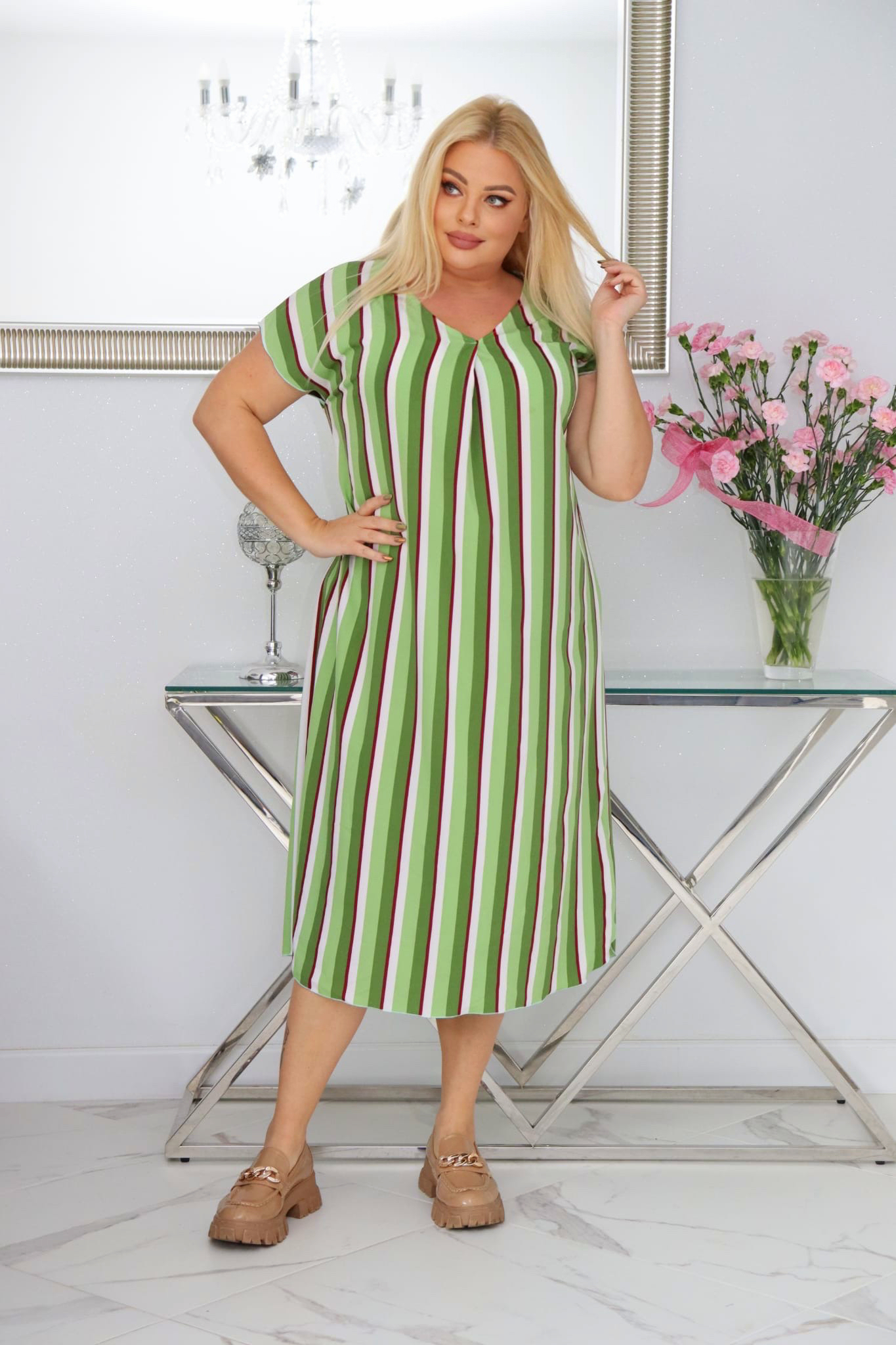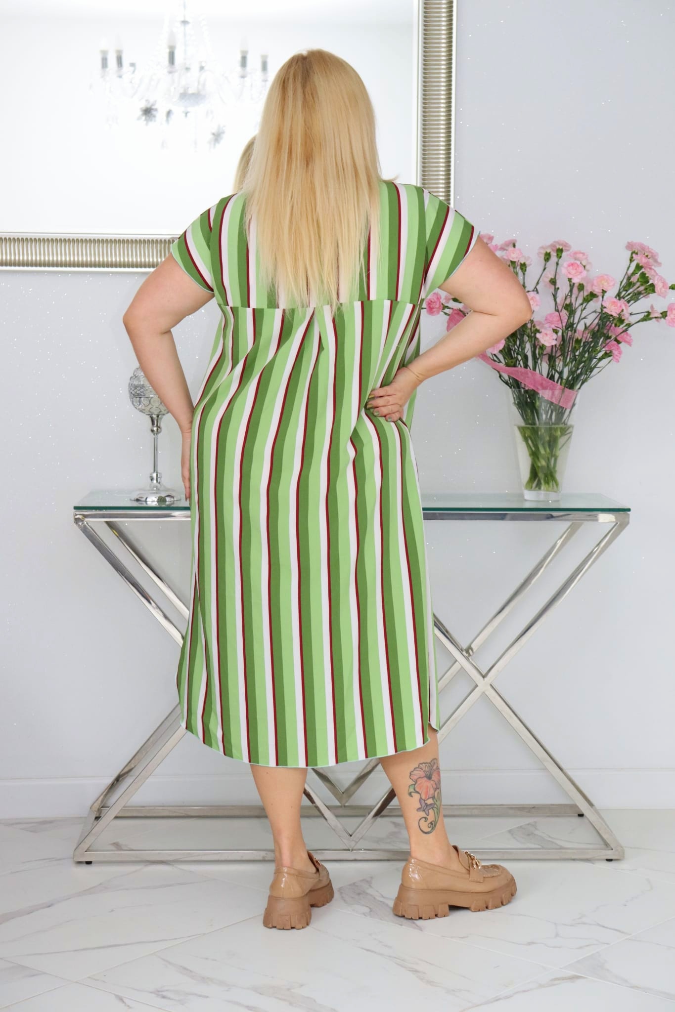 🇵🇱 Polski ProduktSukienka Kloe klasyczna niezwykle wygodna i szykowna zielone paski
