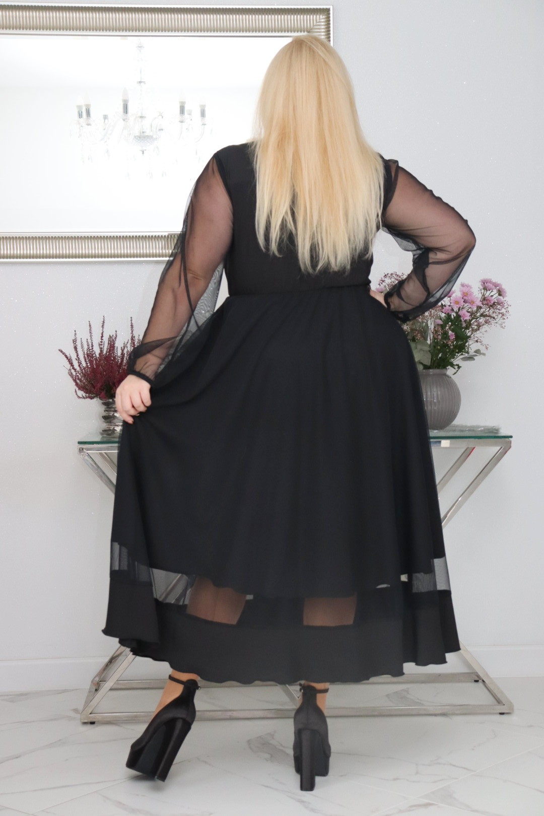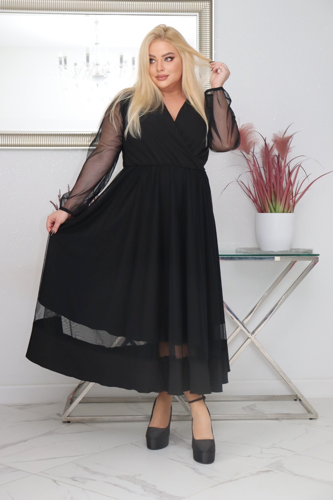 Sukienka Korina lekka zwiewna rozkloszowana czarny tiul