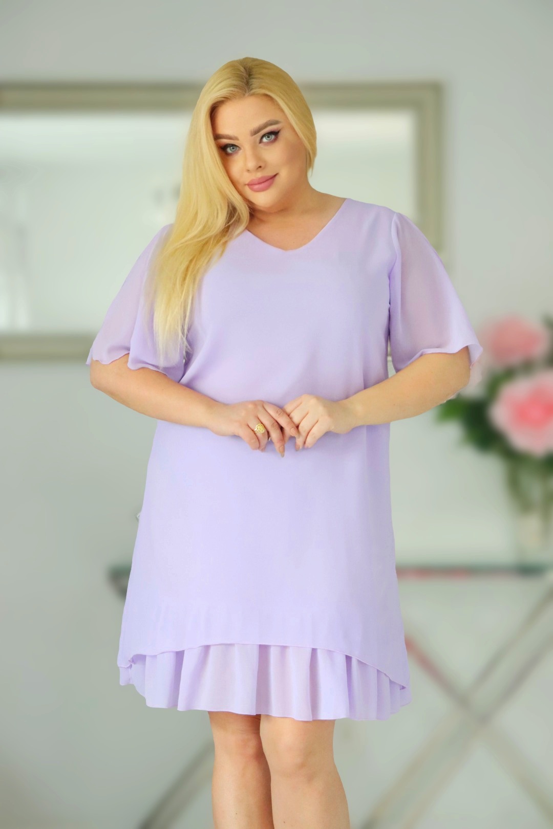 🇵🇱 Polski ProduktSukienka Larija z falbanką z żorżety szyfonowa LILIOWA