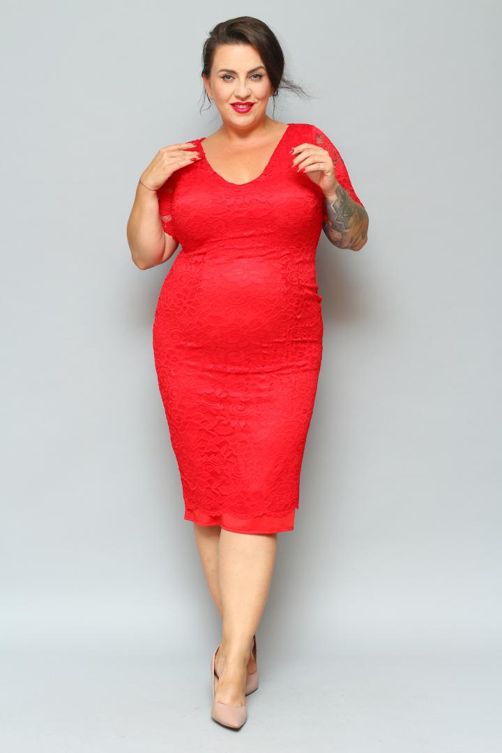 🇵🇱 Polski ProduktSukienka Laura ołówkowa koronkowa dekolt V czerwona kwiatki