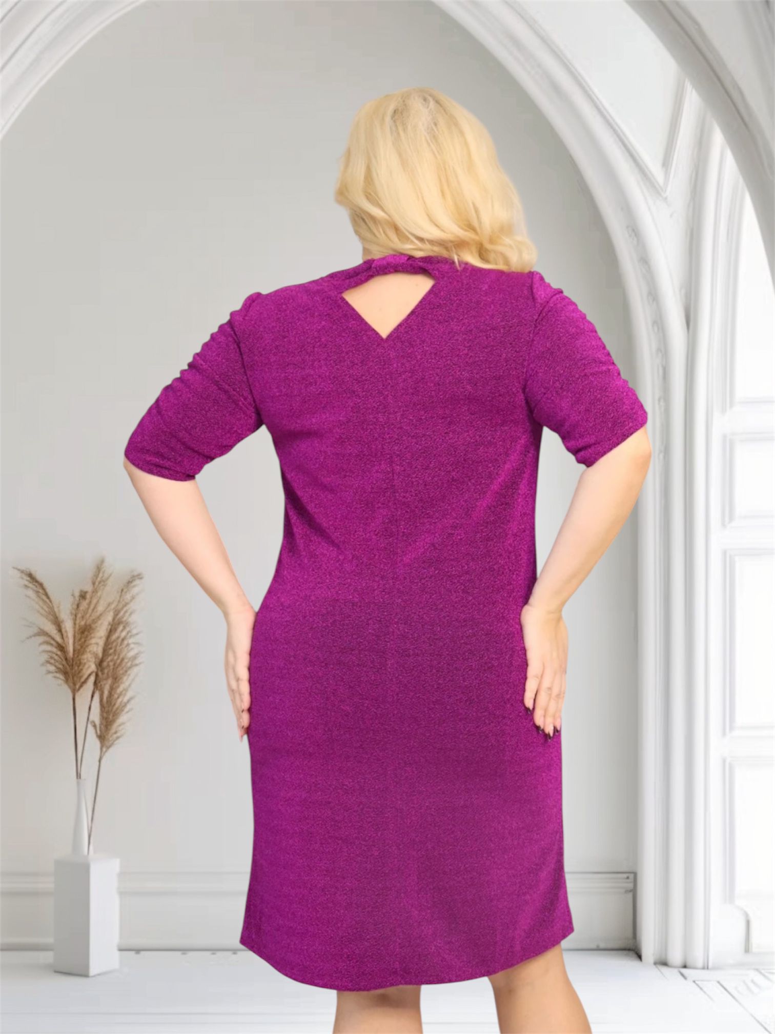 🇵🇱 Polski ProduktSukienka Leja z dzianiny brilliance z broszką GRATIS fioletowa