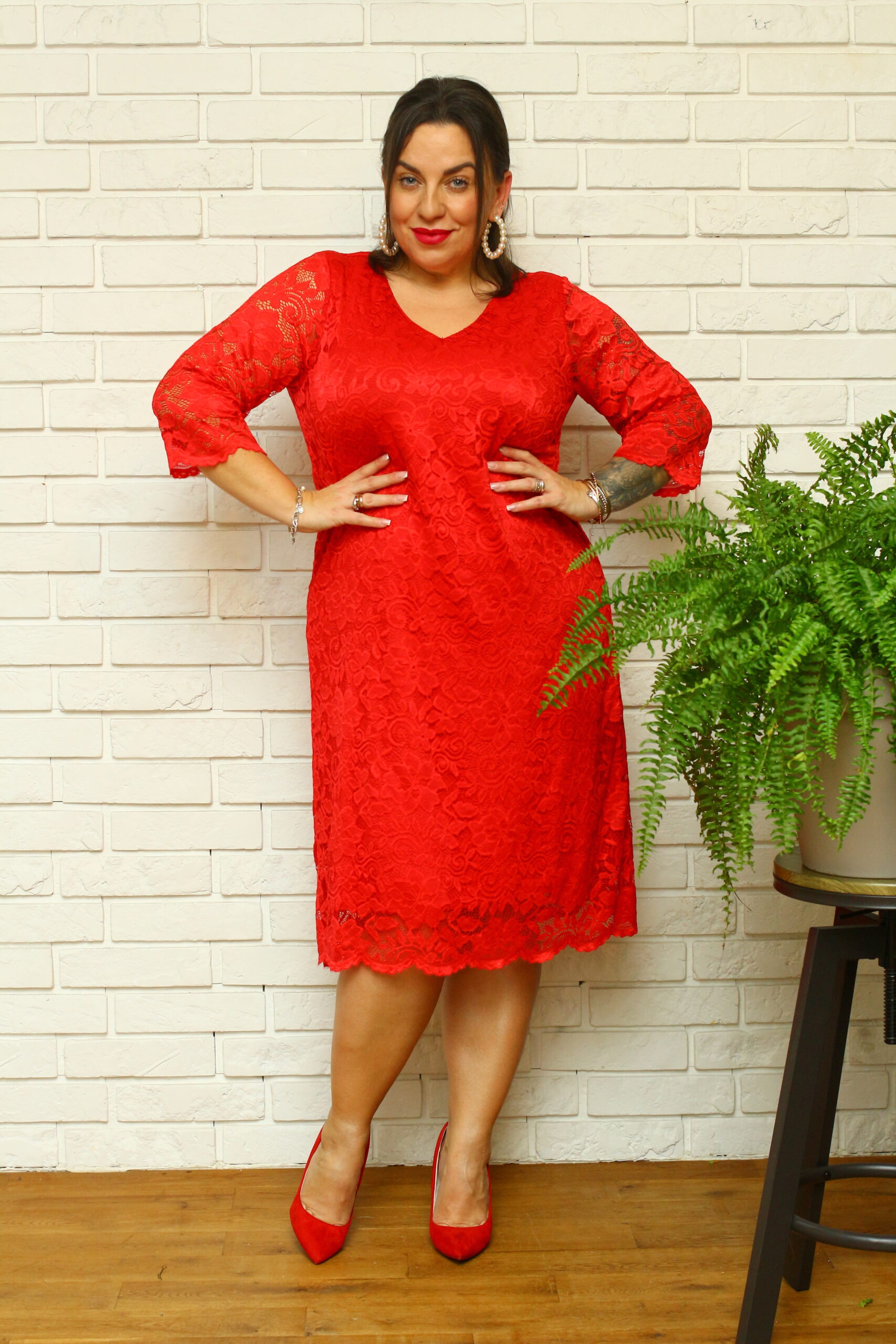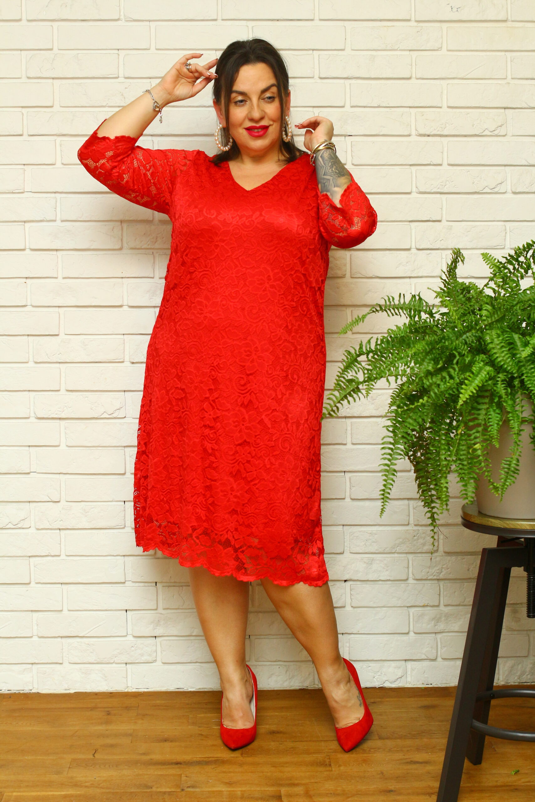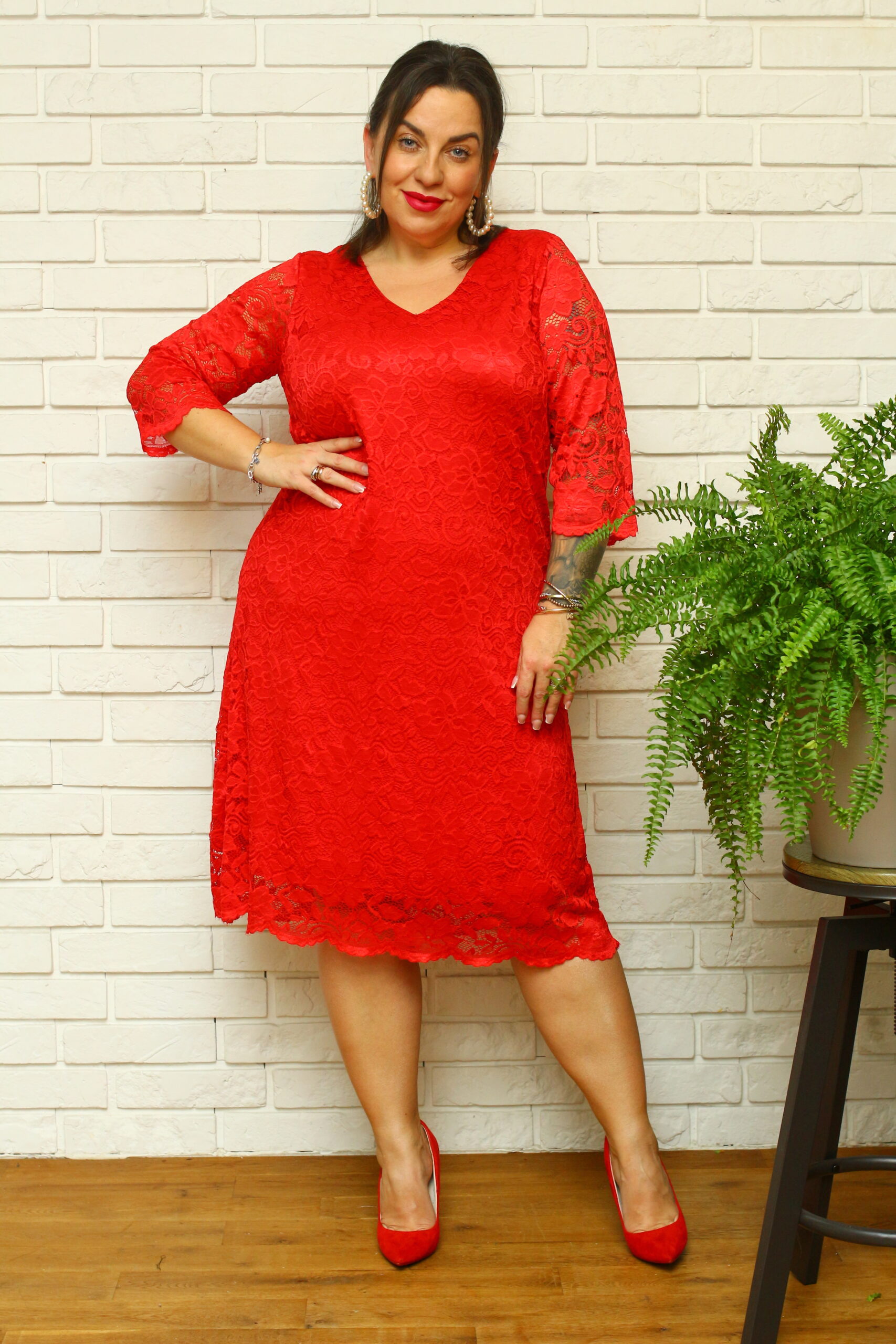 🇵🇱 Polski ProduktSukienka Manola trapezowa koronkowa czerwona