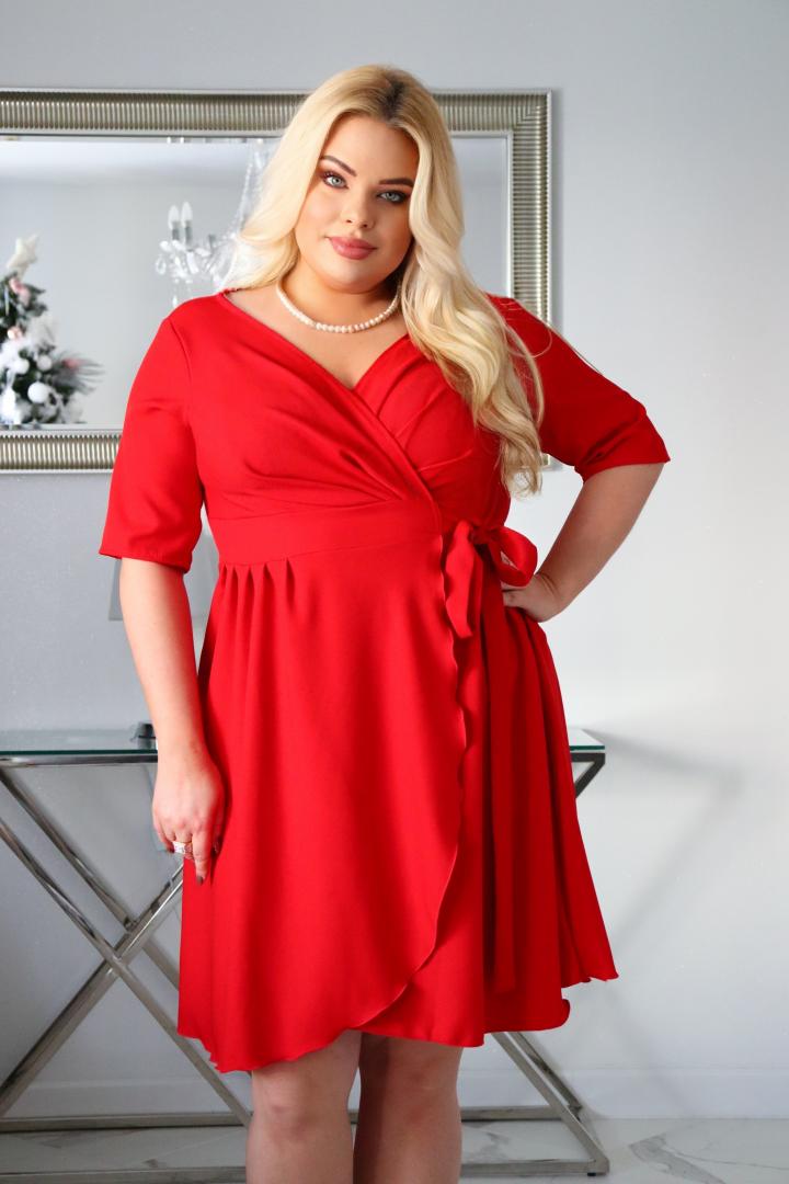 🇵🇱 Polski ProduktSukienka Meghan rozkloszowana kopertowa szlafrokowa czerwona