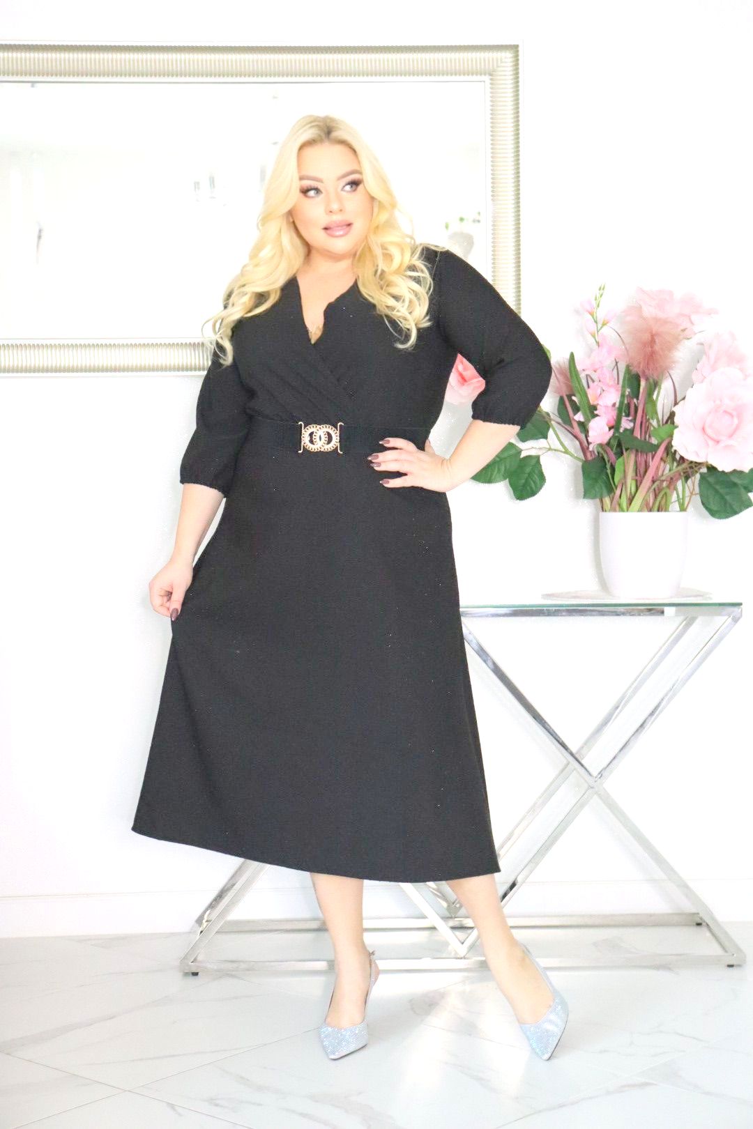 • To połączenie elementów kroju sprawia, że sukienka jest wyjątkowo korzystna dla sylwetki plus size.
