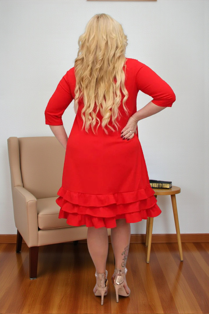 Sukienka Milagros – klasyczny fason trapezowy z romantycznymi falbankami! CZERWONA